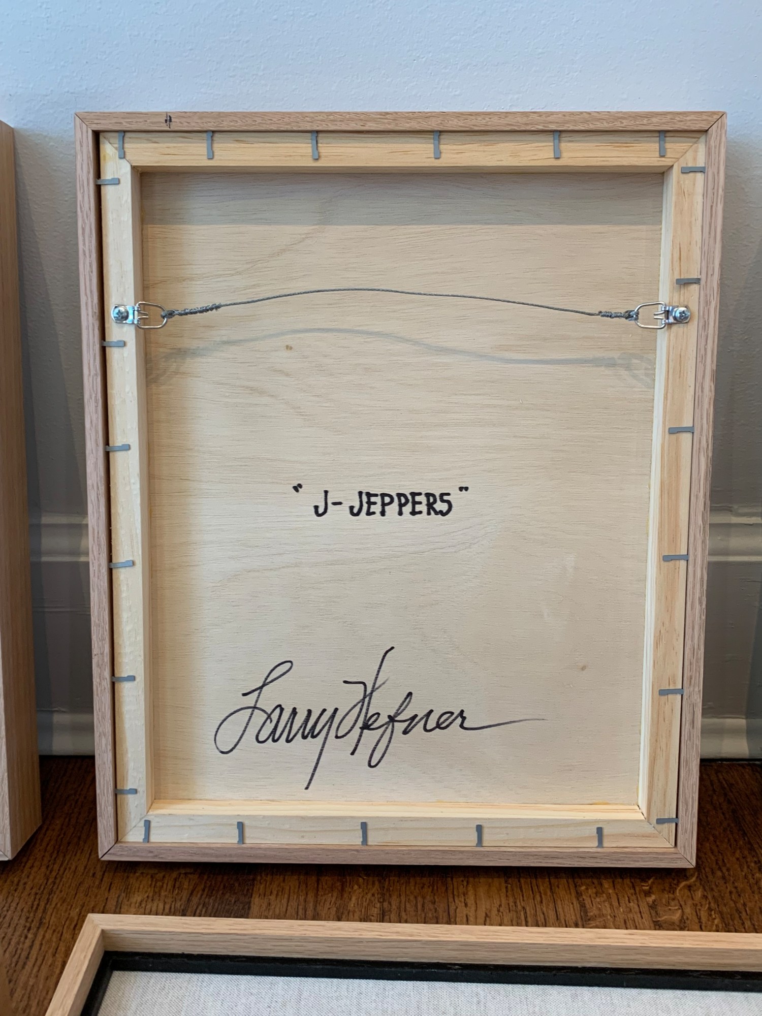 This abstract painting titled “J Jeepers,” is part of a series featuring all 26 characters of the alphabet. I was inspired by different fonts to create this unique series of works. Each work features one letter from the alphabet. The font name chosen starts with the letter featured.