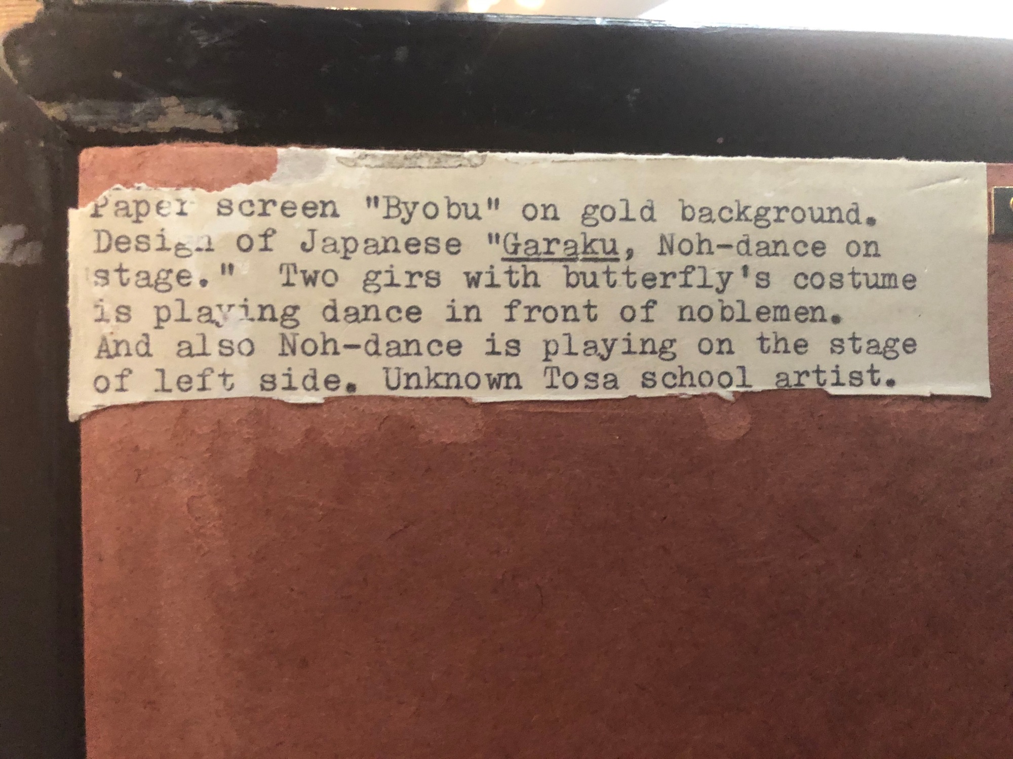 'Japanese Table Screen Byobu - Noh Dance on Stage,' Unknown Tosa School painting