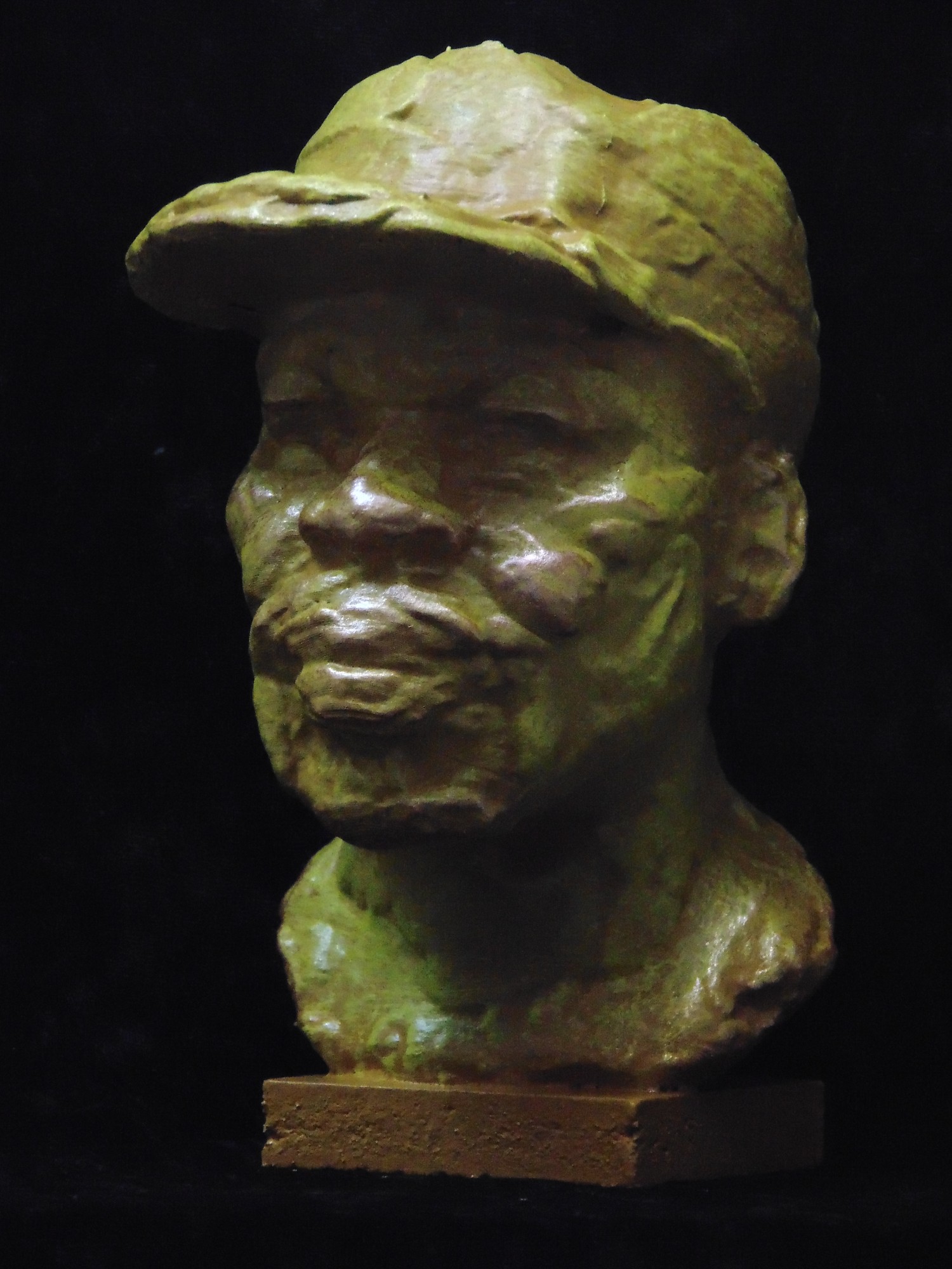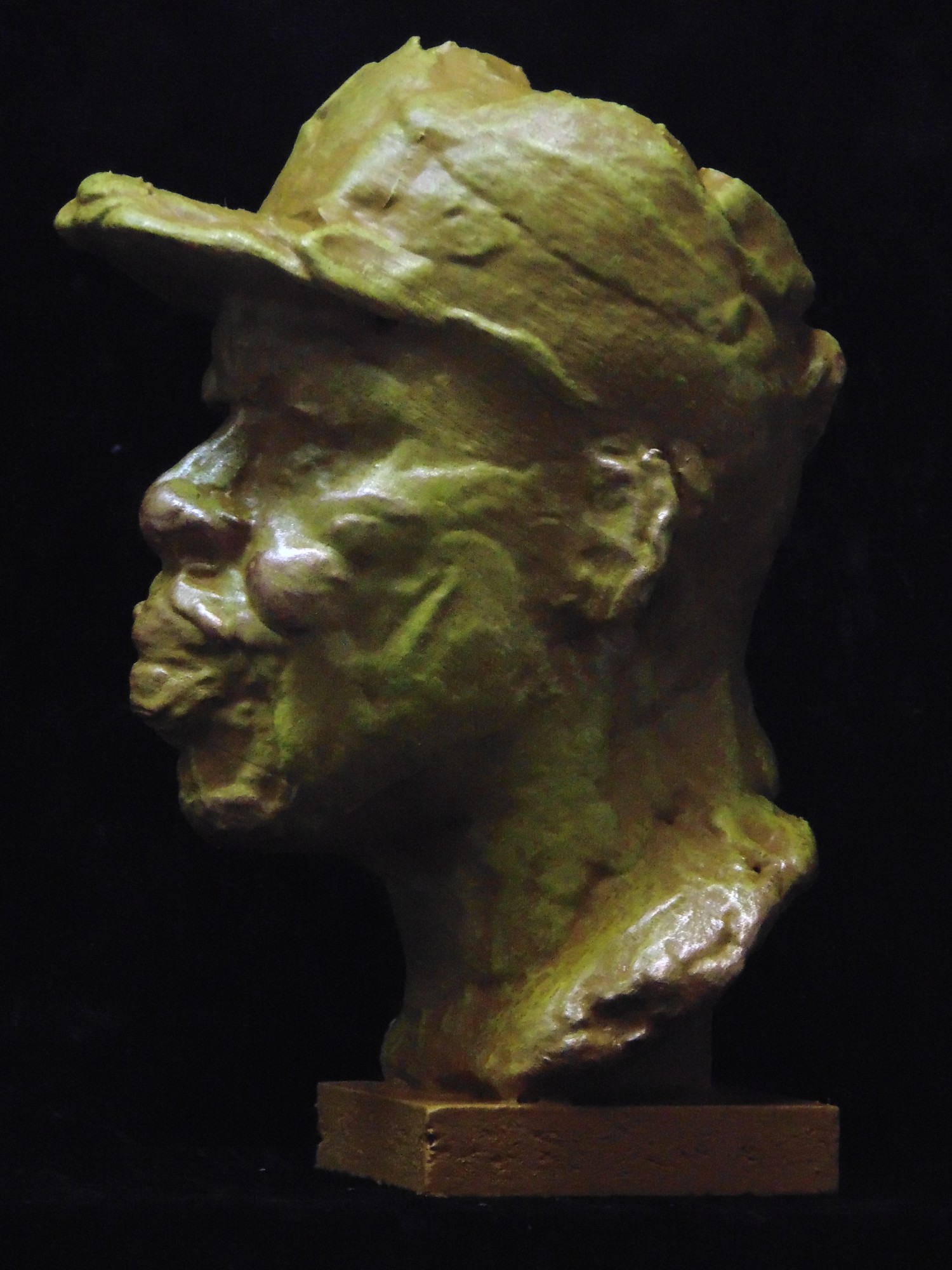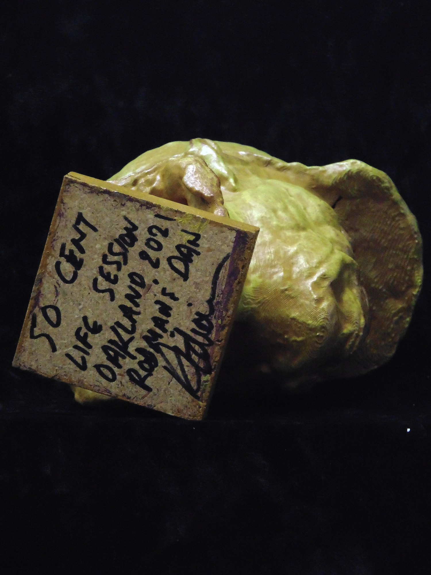 Unique 3D printed sculpture from the Hip Hop All-Stars Series, hand signed by the artist. A work of contemporary academic realism in portraiture, painted with an acrylic metallic finish over earth tone and color finishes. This portrait was originally sculpted in wax during a live performance at the Complex in Oakland, California by the father and son team of sculptors, Daniel and Rodman Edwards, signed by Daniel Edwards. The wax portraits were scanned by the process of photogrammetry in preparation for 3D printing, utilizing traditional methods with current technological trends in sculpture. This work, in a different iteration, was previously exhibited at California State University and Hiphopallstars.art.