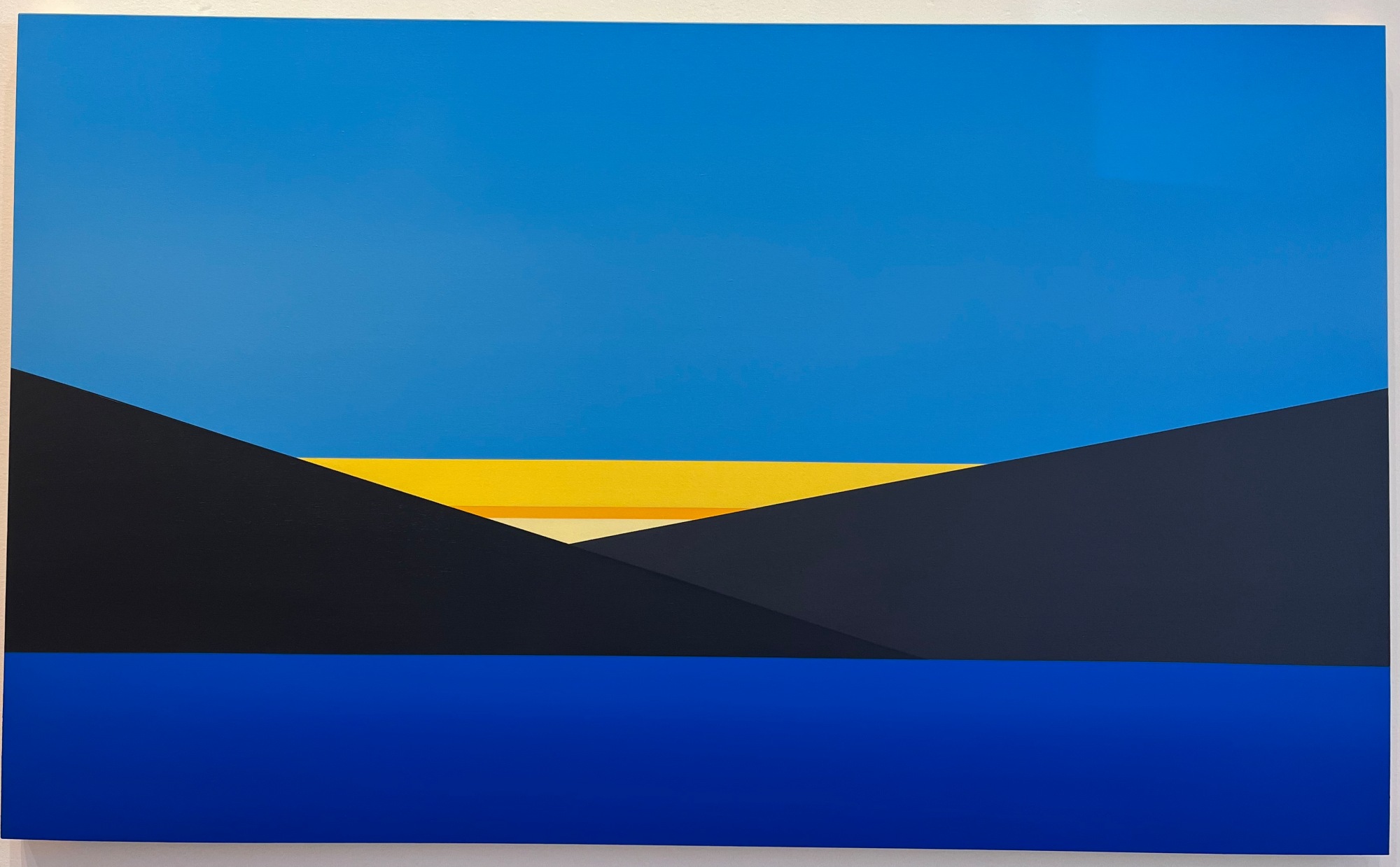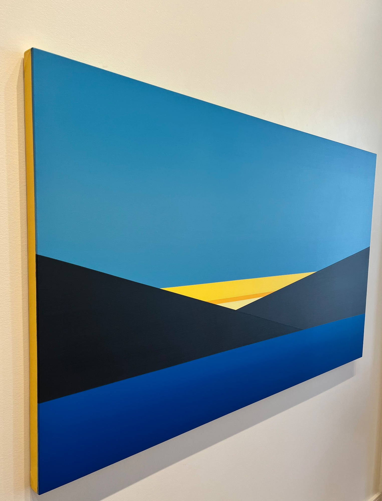 Peaceful sunrise captured in gradient vivid blues and bright yellows just peeking over the edge into the beginning of a new day.