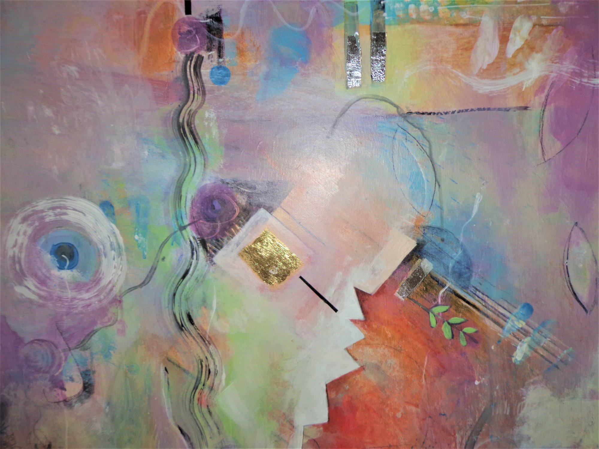 This 24" x 30" acrylic on canvas painting, 'Sunset on Grand Canyon,' by Dragana Milovic is a fantastical abstracted landscape inspired by the Grand Canyon. "During a visit to the Grand Canyon I was fascinated by nature's colors which surrounded me. This painting represents parts of the palette of colors I experienced that day and which remain in my memory." -Ana Gard