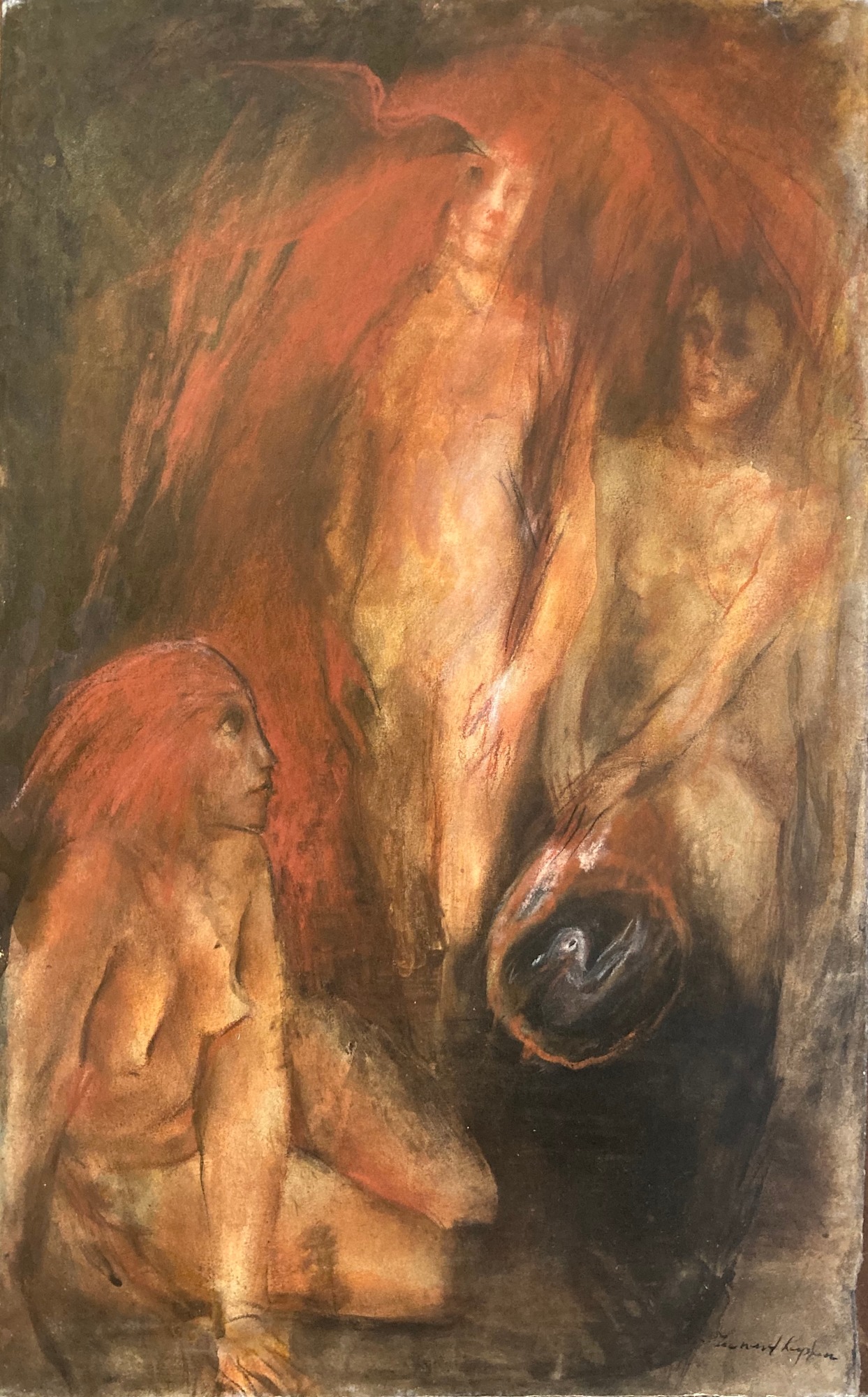 'Surrealistic Nude Figures,' by Leonard Kaplan, Painting, c. 1960s