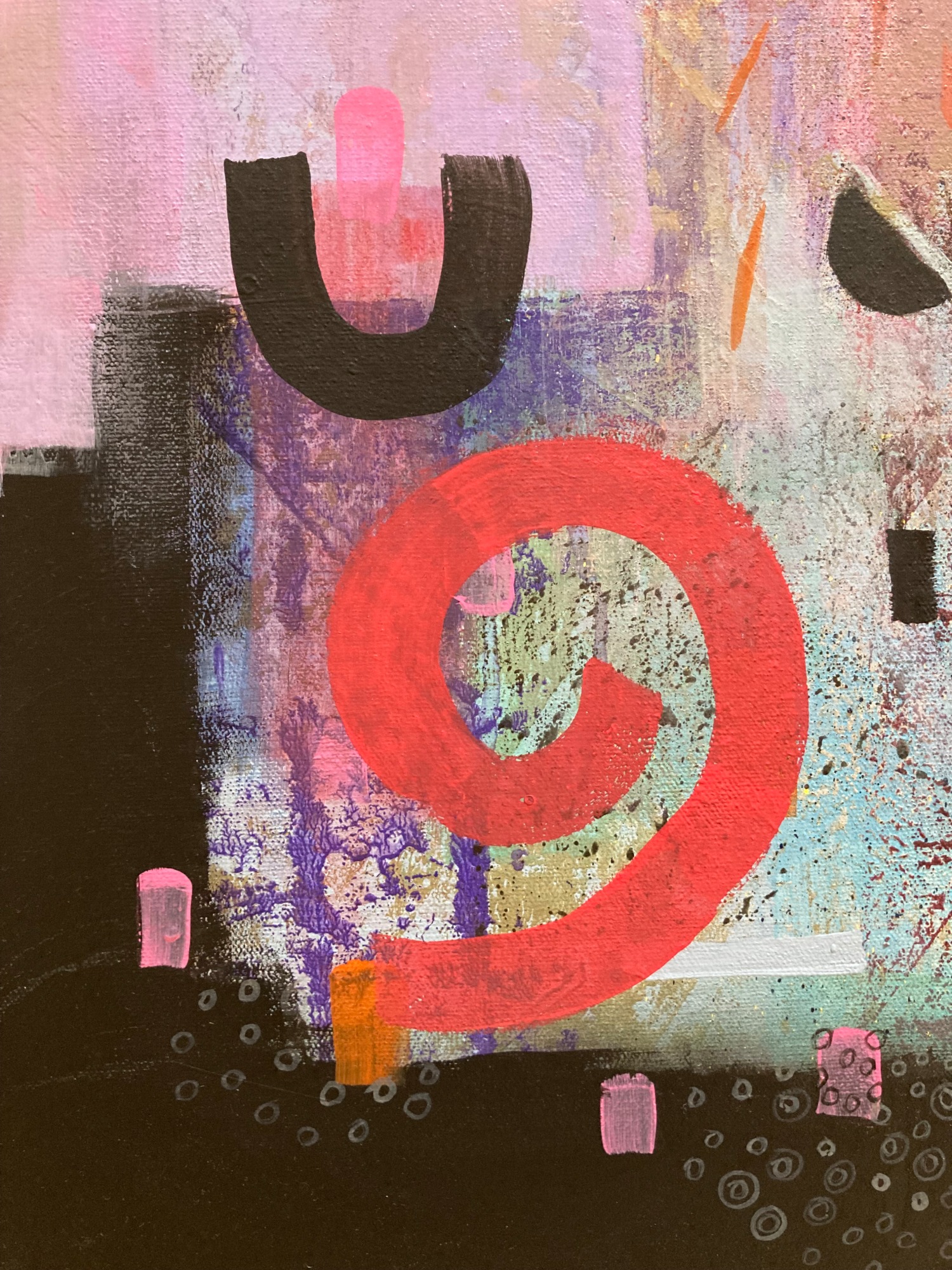 While composing this painting, I tried to use pastel body colors to soften the sharpness and roughness of geometric shapes and to connect them into one whole. As an ultimate goal, I wanted to keep the dynamism of the whole composition.