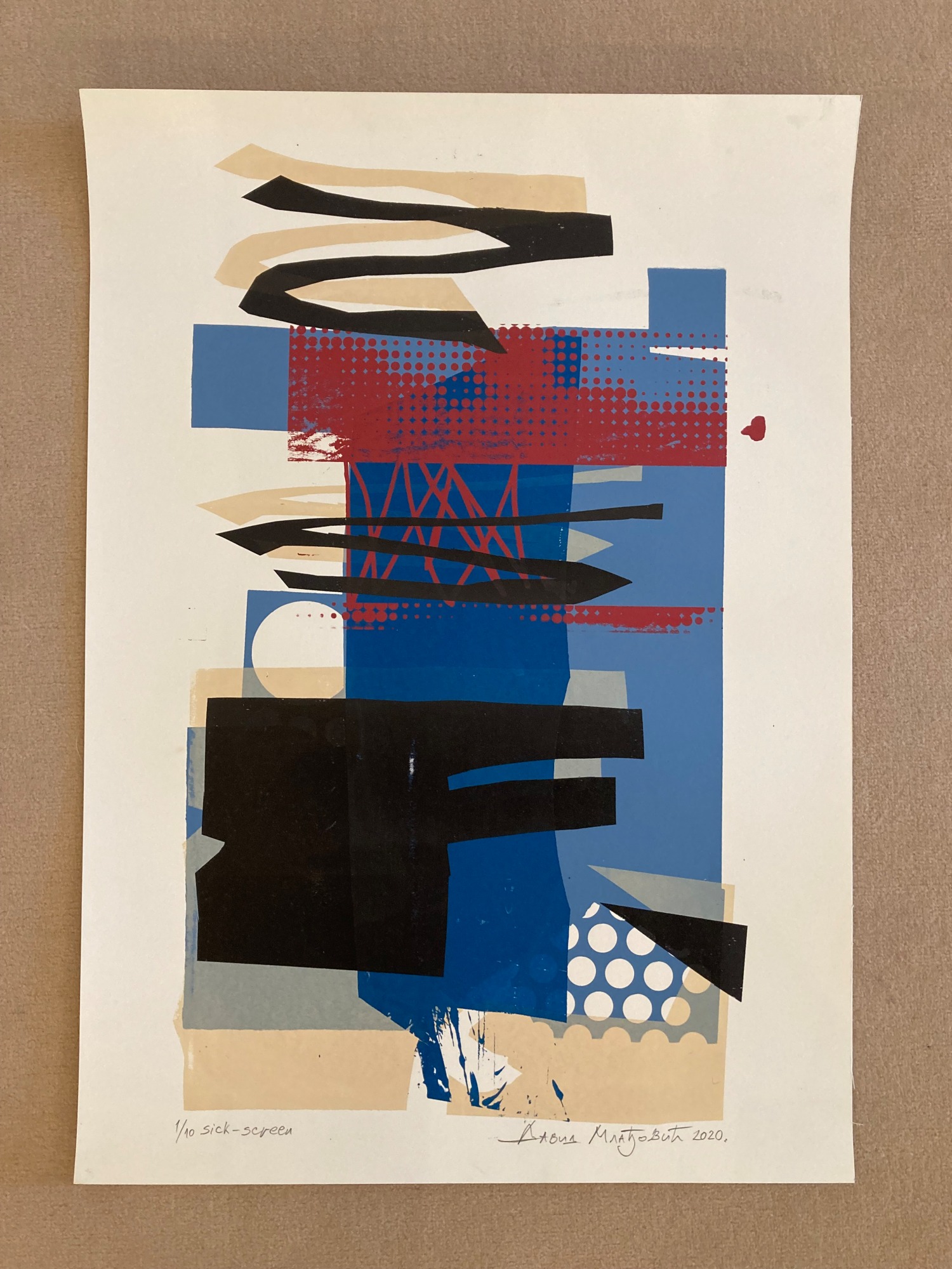 collage composition made by using old drawings and paper and transfer by silkscreen method