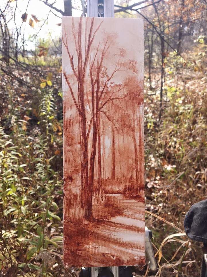 This èn plein air painting was made during a perfect Autumn day. One of my favorite times of the year, when nature paints the trees with an amazing palette of colours.