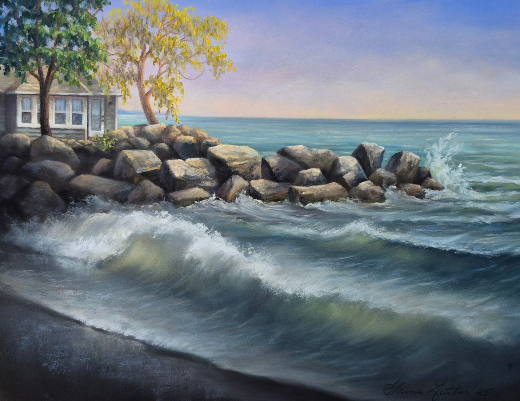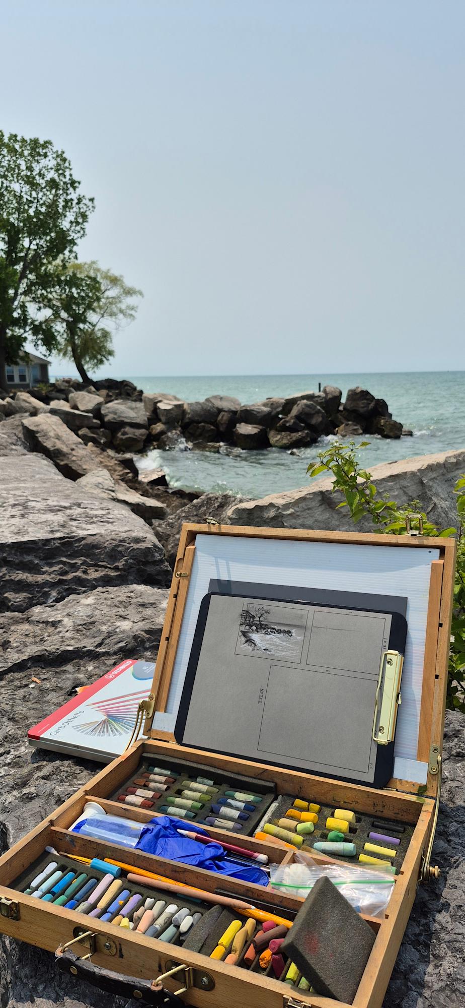 I appreciate the aesthetic qualities of pastel painting and enjoy the tactile experience of hand painting. Rendering the dynamic movement of waves *en plein air* presented a significant artistic challenge. The overall experience was delightful, enhanced by the refreshing lake breeze and the soothing sounds of the waves.
