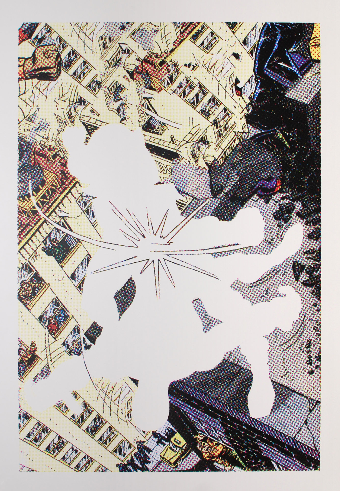 - Subject Matter: Comic book action scene in a city