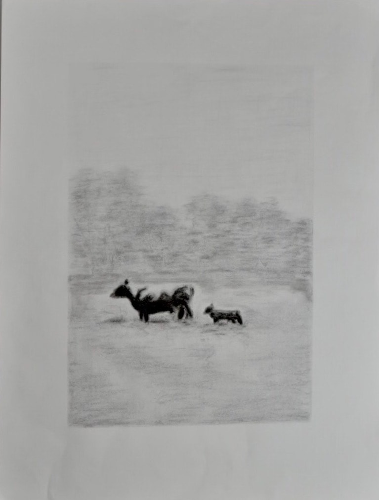 - Charcoal on paper