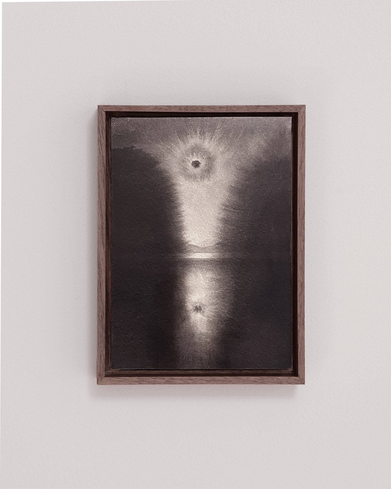 Ink on archival watercolor paper mounted to panel in walnut frame
