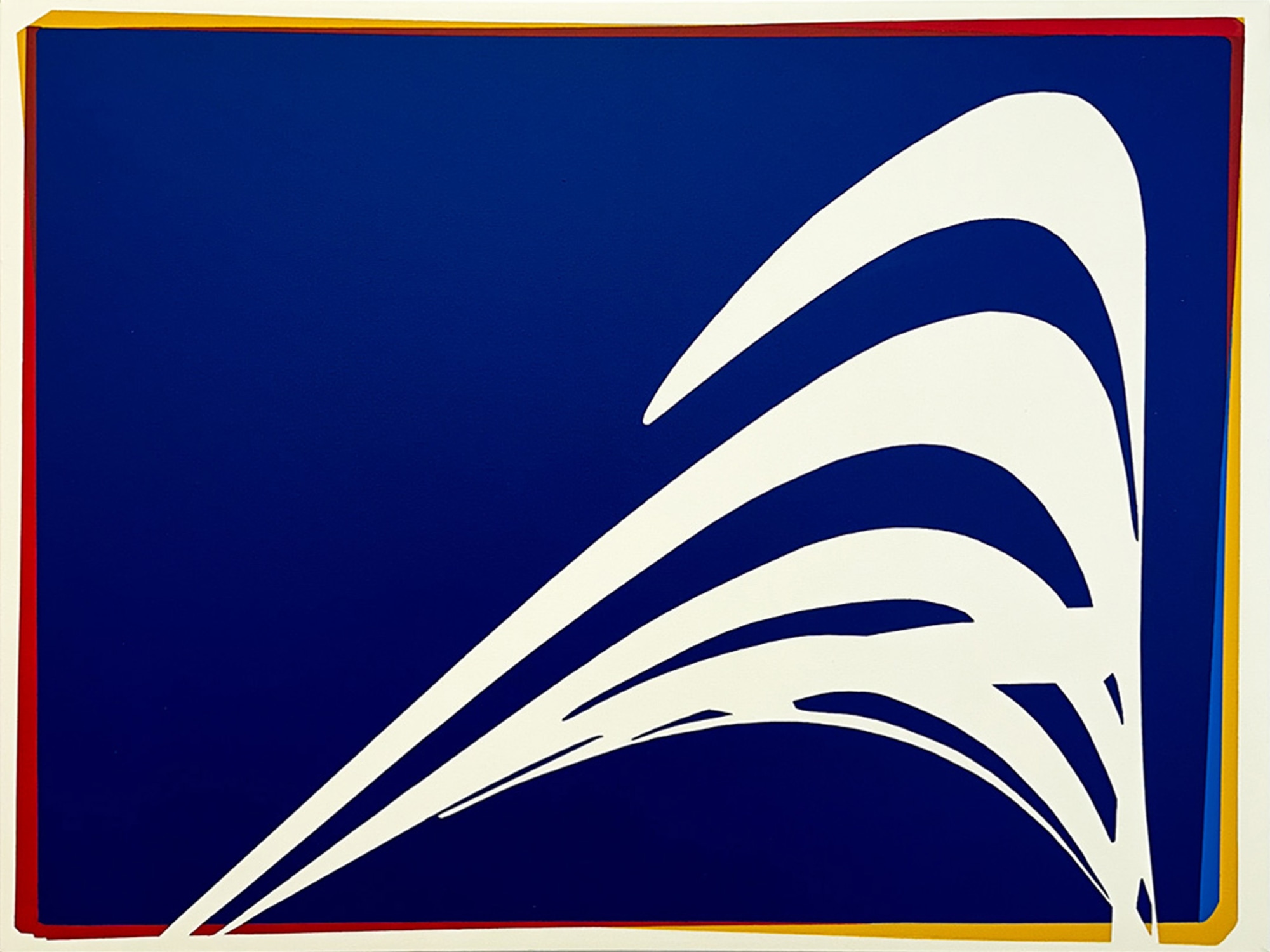 Inspired by architecture, I manipulated my handwriting to create the arced shape set against a minimal but bold primary color background, with subtle shades of each primary to add depth