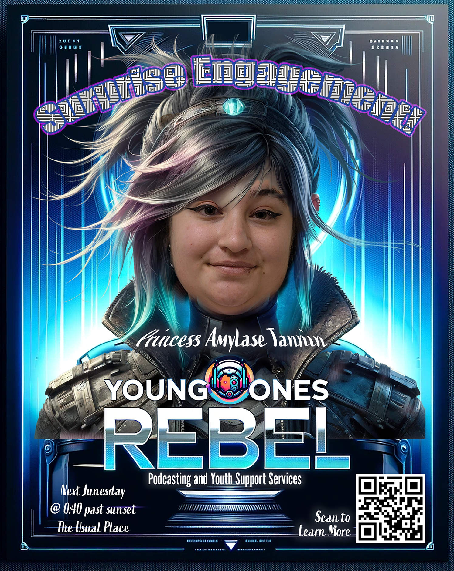 Game Poster for an original game titled "Revenge of the Beer Sith". The game creators included the artist and her partner, Mark van der Pol for a client. All the posters for the game were created in collaboration by the artist with ChatGPT's DALL-E, and refined in Photoshop, combining other design elements and photos of the Players taken by the artist's Samsung Note10.