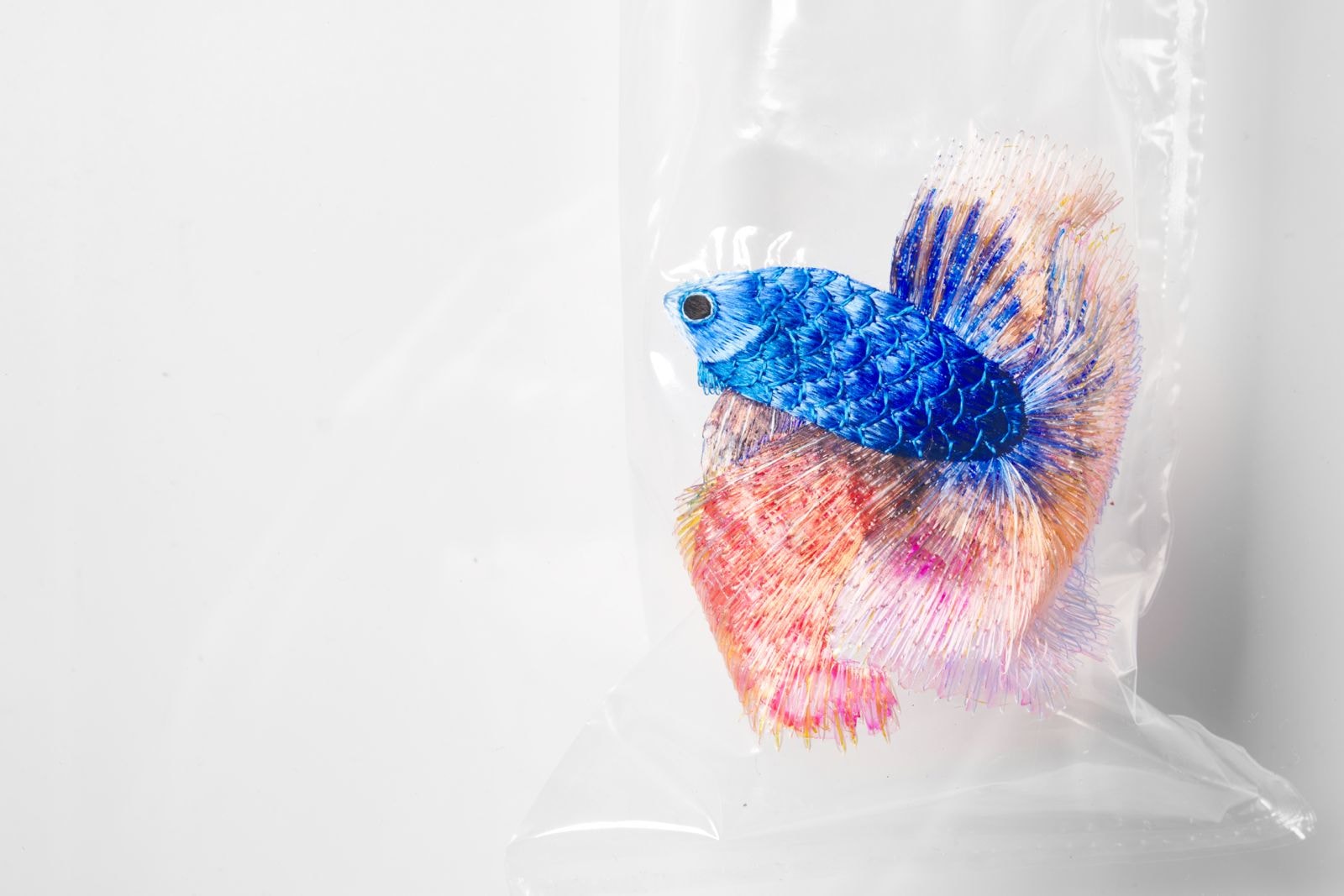 Betta Fish #18 (Embroidery on Plastic Bag series)