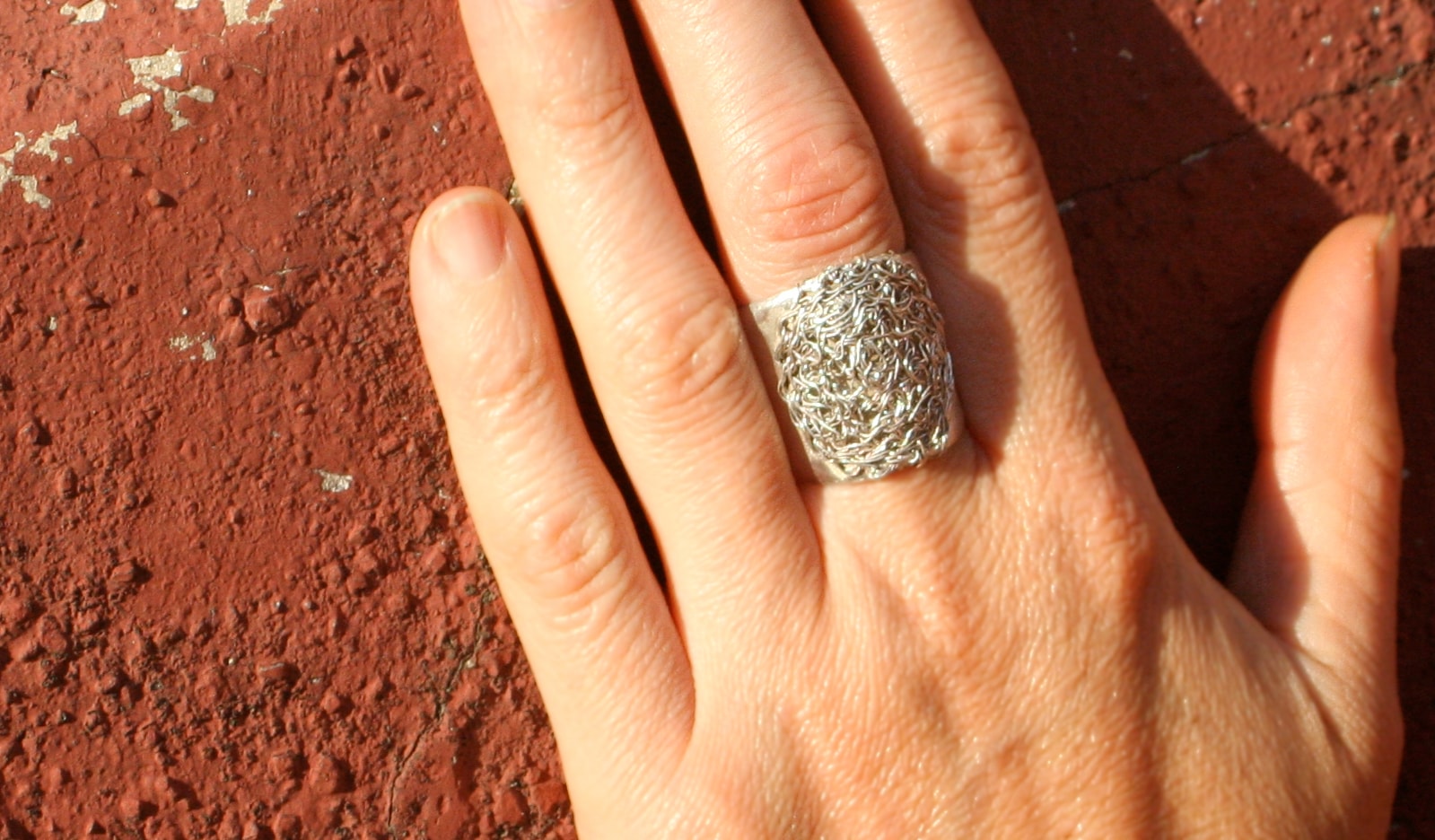 Ana Gabriela's work focuses on drawing and sculptural jewelry, although she explores other media and many different techniques.