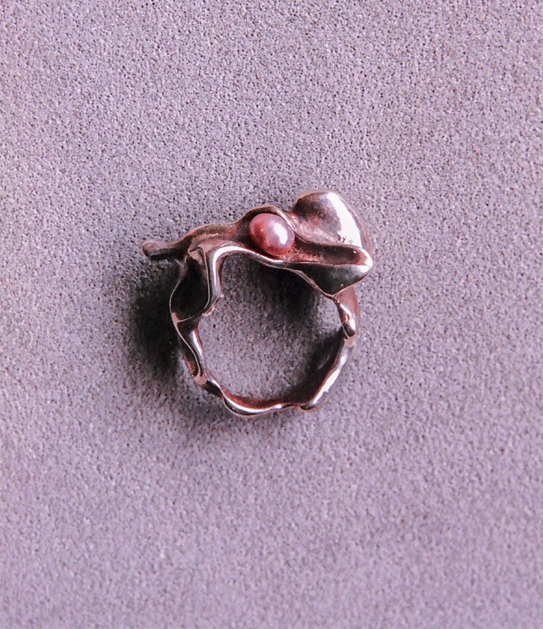 MessageSterling silver sculpted ring reminiscent of driftwood set with pink pearls.