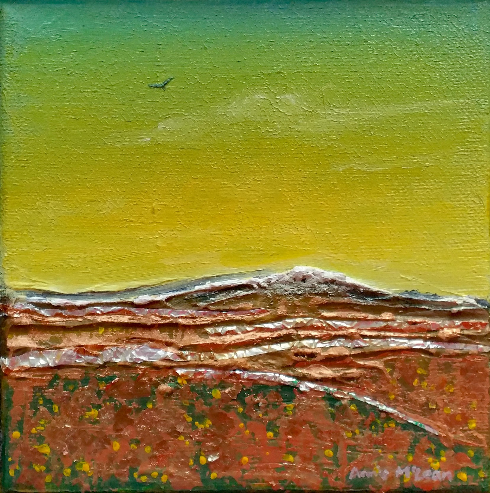 The land has always fascinated me, moments in time for no reason stick in my memory. I often find that these moments resurface when wondering what next to paint and it is then that these smaller paintings emerge. This one was painted entirely from my imagination and could quite easily be any of the hills I have walked amongst in Scotland.
