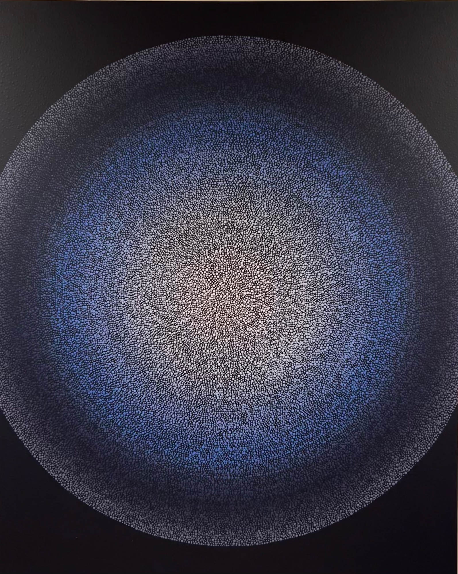 AJ is an abstract pointillist. Using the eraser side of a #2 pencil she creates balanced and detail oriented paintings.