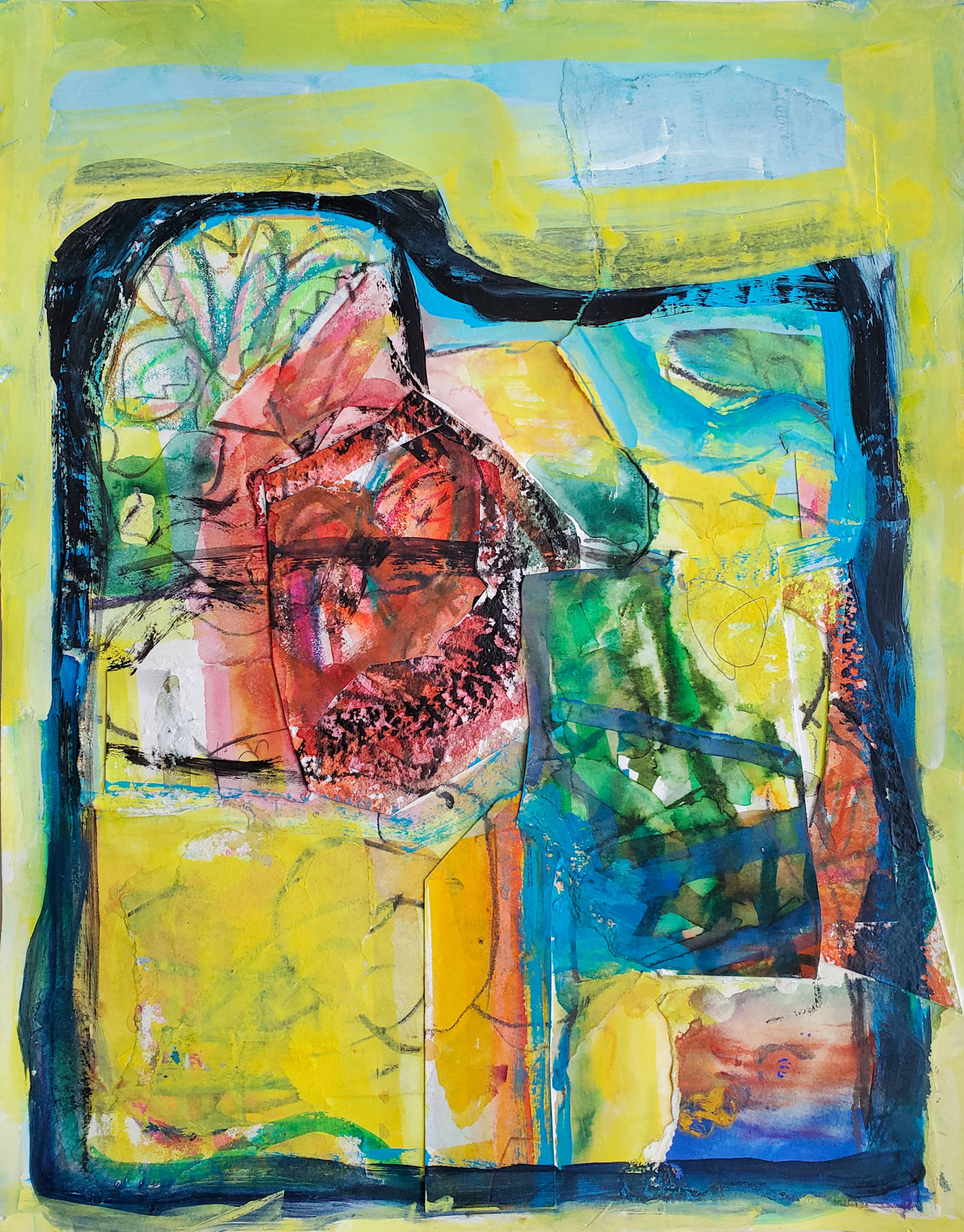 mixed media on paper (watercolor, acrylic gouache, artists crayons, graphite & collage)