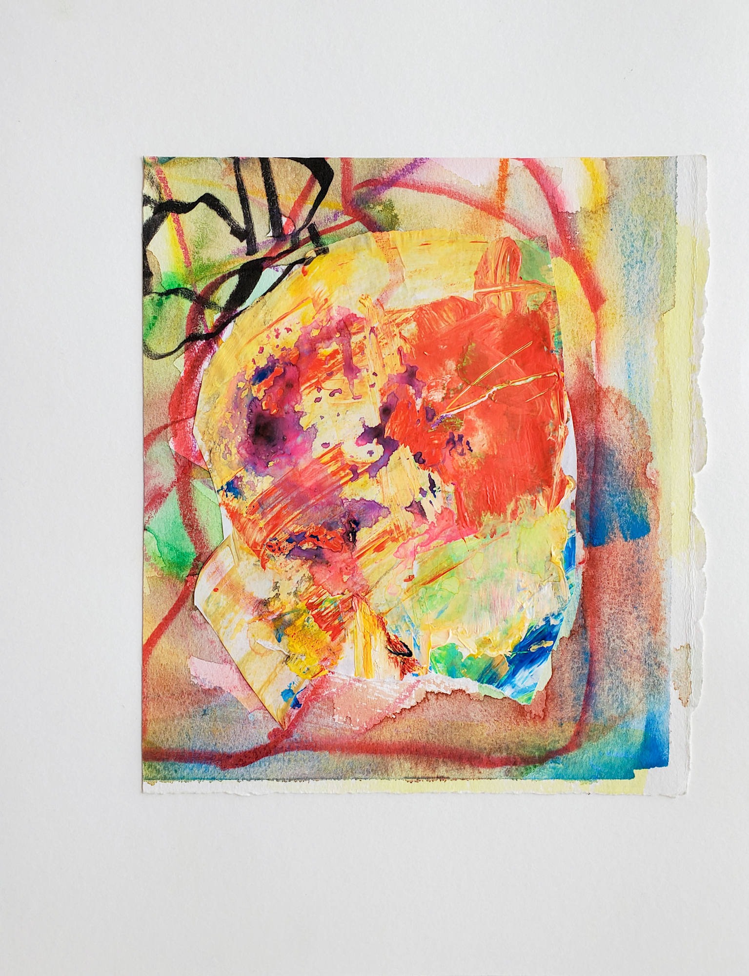 mixed media (watercolor, acrylic, watercolor markers, artist crayons & collage) on paper
