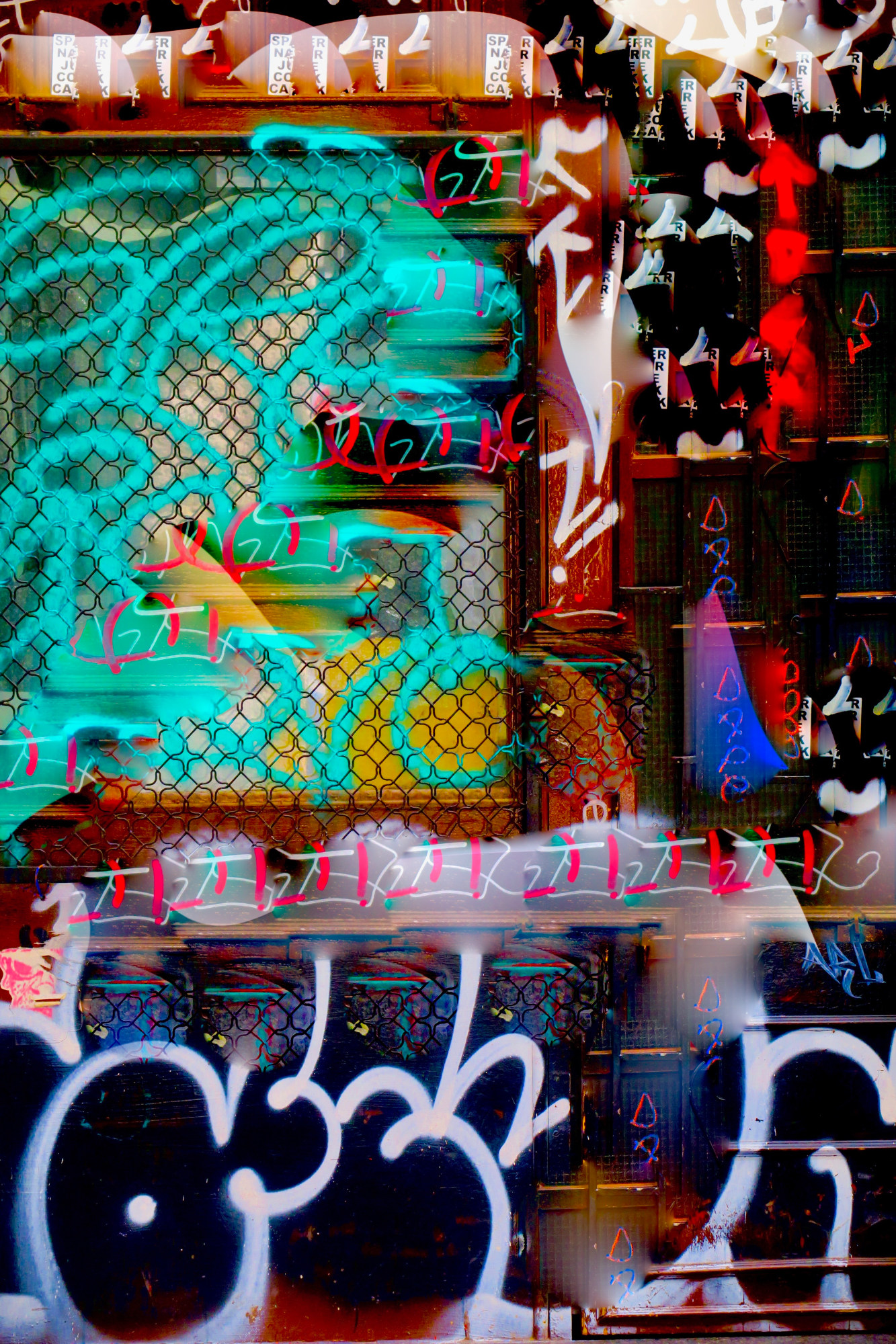 Digitally manipulated image of window grate graffiti, Barcelona, Spain