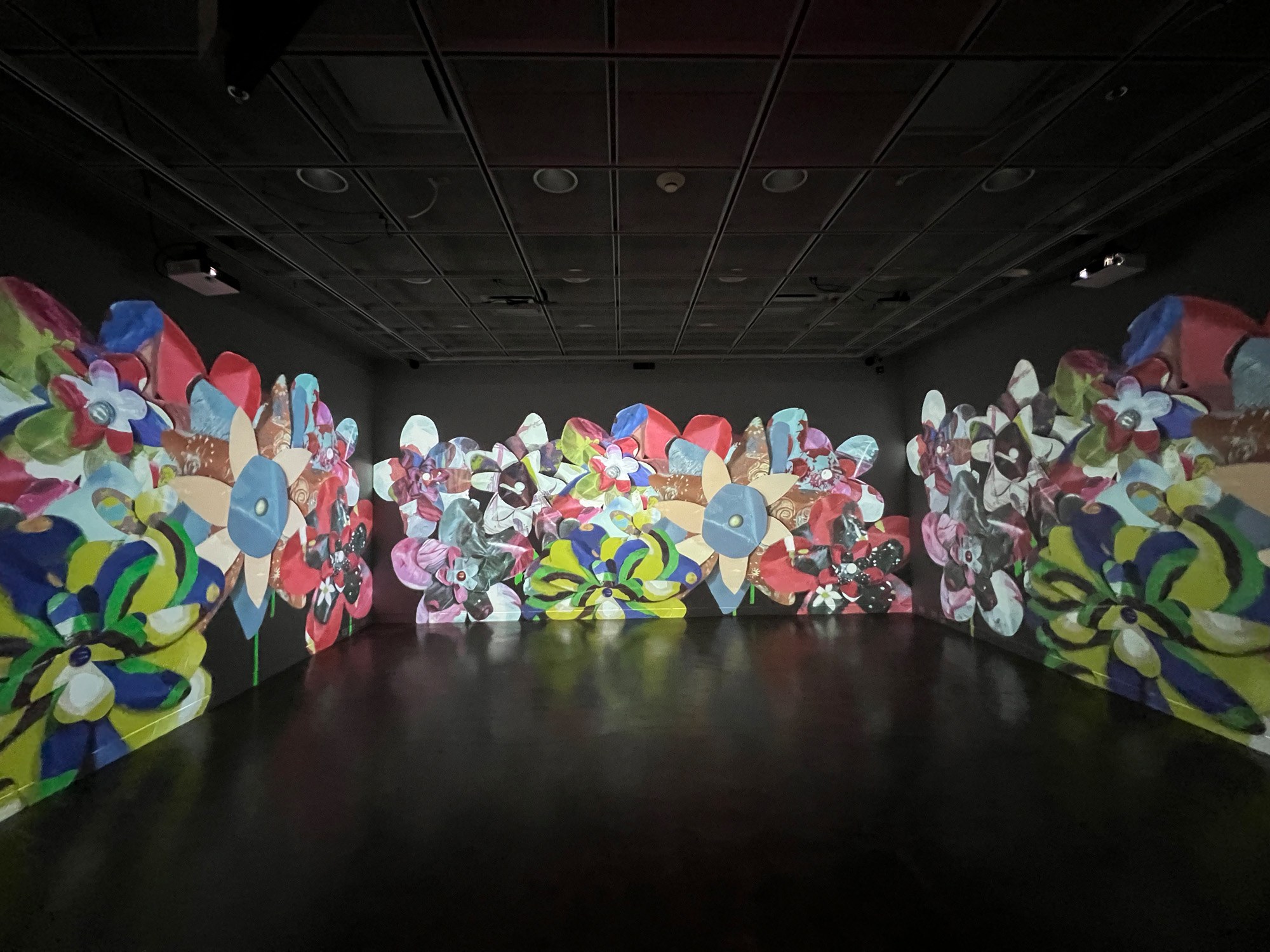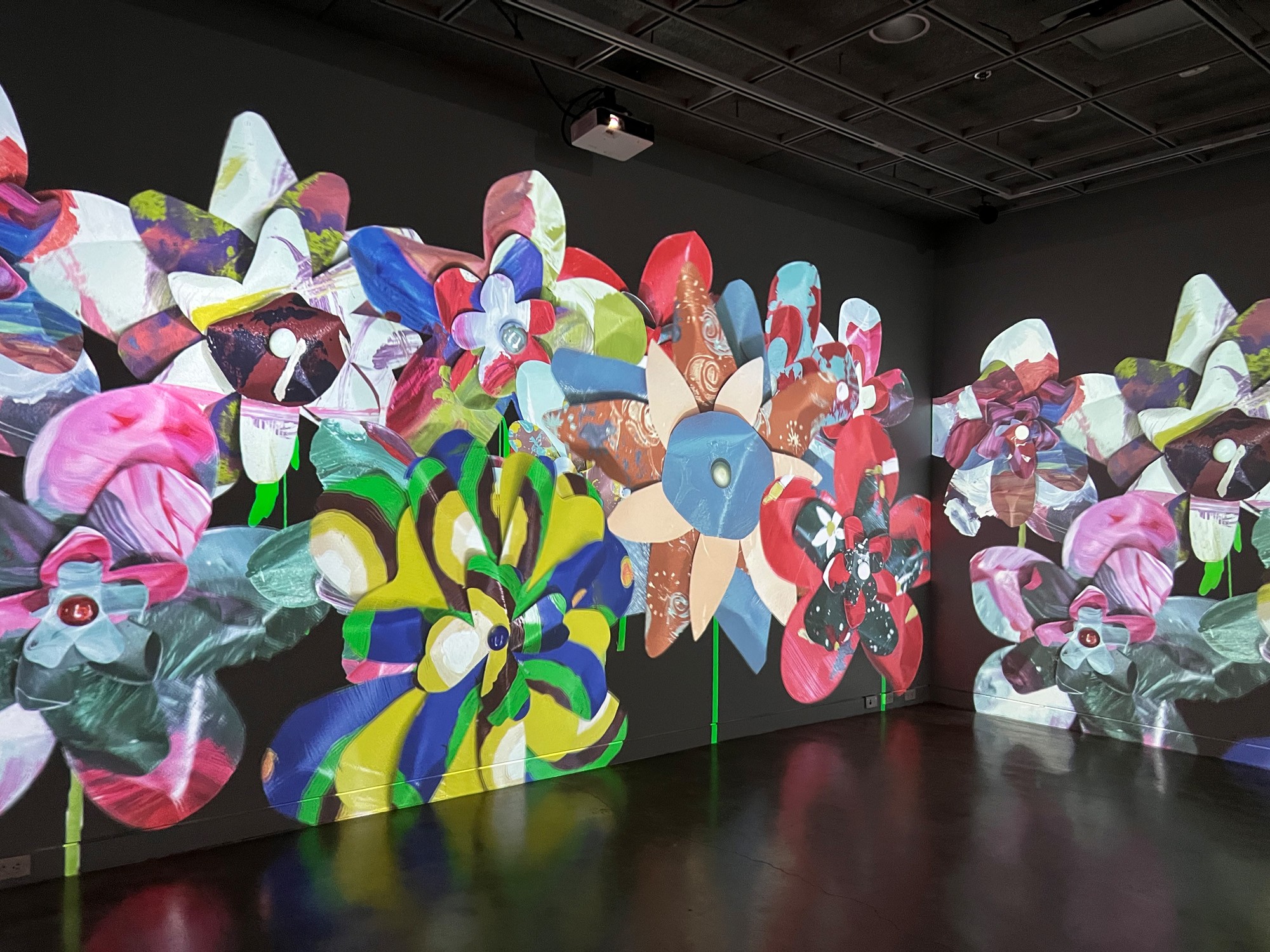 Hidden Garden Installation, Alfred University, EIA residency, source Studio 190 flowers animated across 3 4k screens November 2021