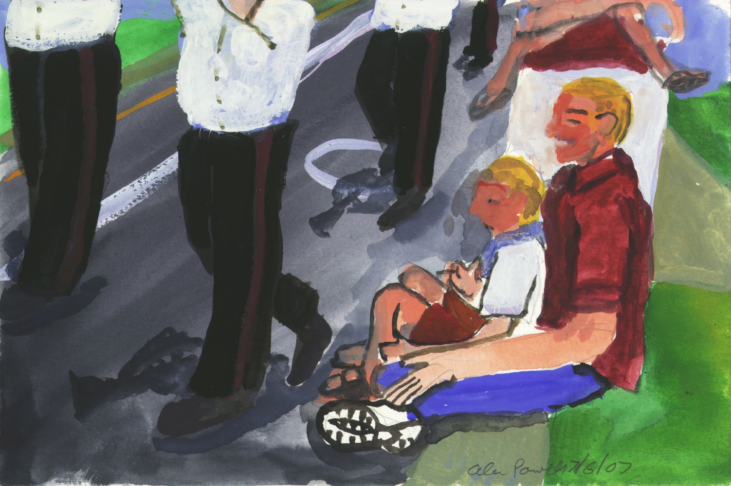 Part of a painted diary 365 6"X9" gouaches during 2007. Painted diaries also exist for years 1997-98, 2000