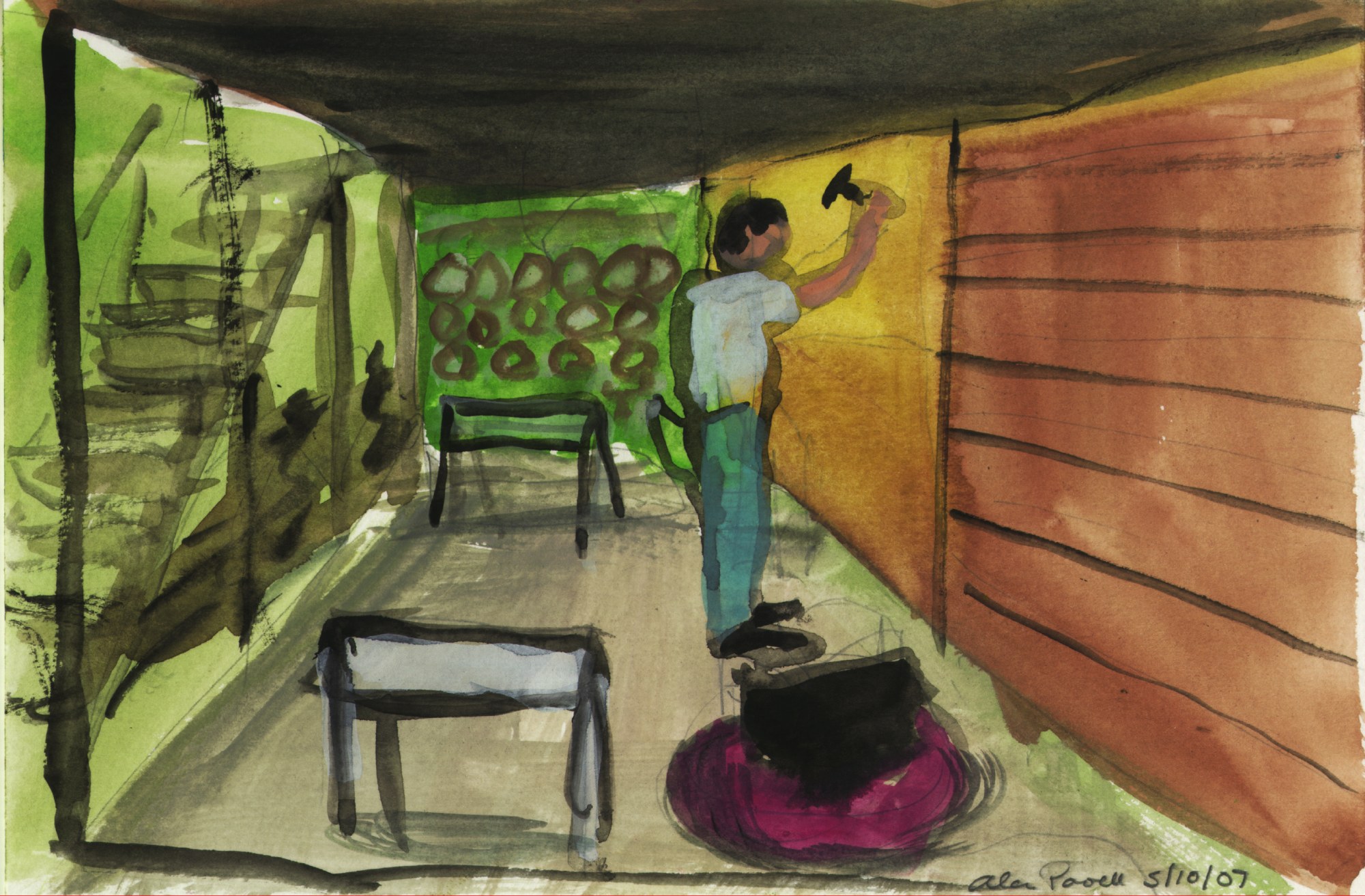 Part of a painted diary 365 6"X9" gouaches during 2007. Painted diaries also exist for years 1997-98, 2000