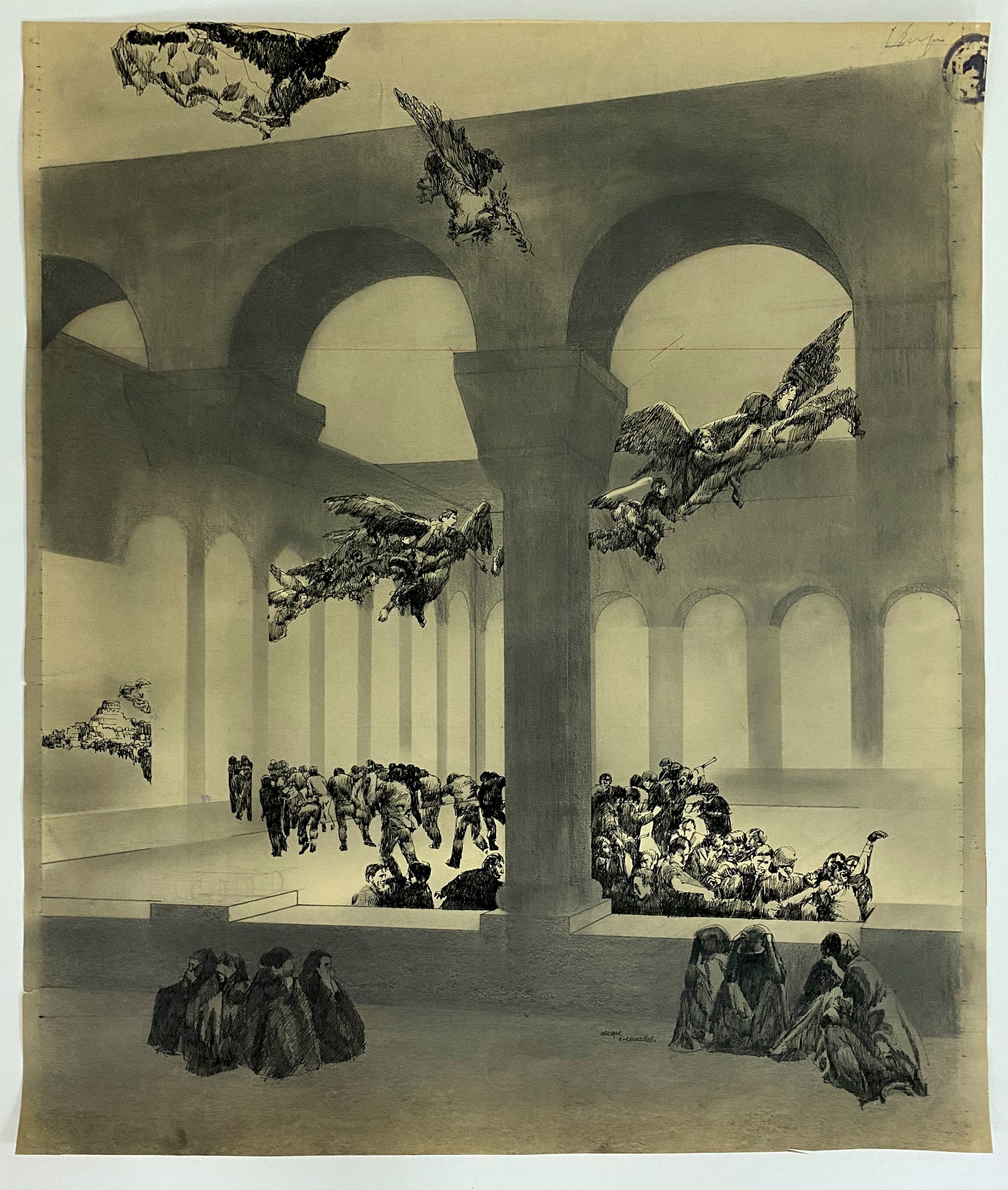 Collection of drawings from the 60s. Characterized by the use of mixed technique on graph paper.