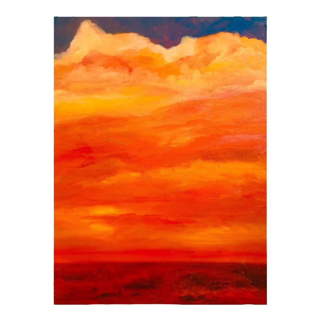 Step into the radiant embrace of "Southwestern Serenity," a captivating sunset that bursts with life and color. This piece captures the transition of the evening sky with an opulent palette of deep reds, oranges, and yellows, gracefully shifting from the darker shades at the horizon to lighter tints above. Soft, flowing brushstrokes suggest the ethereal movement of clouds, skilfully rendered to glow in the fading light of day. The vibrant interplay of colors and textures not only evokes the drama of a Southwestern sunset but also imparts a profound sense of warmth and tranquility. The inspiration drawn from Tonalism brings a unique depth, enhancing the landscape with a contemplative ambiance that is both abstract and evocative. This artwork is a luminous homage to the serene beauty of twilight, inviting viewers to bask in its serene glow.