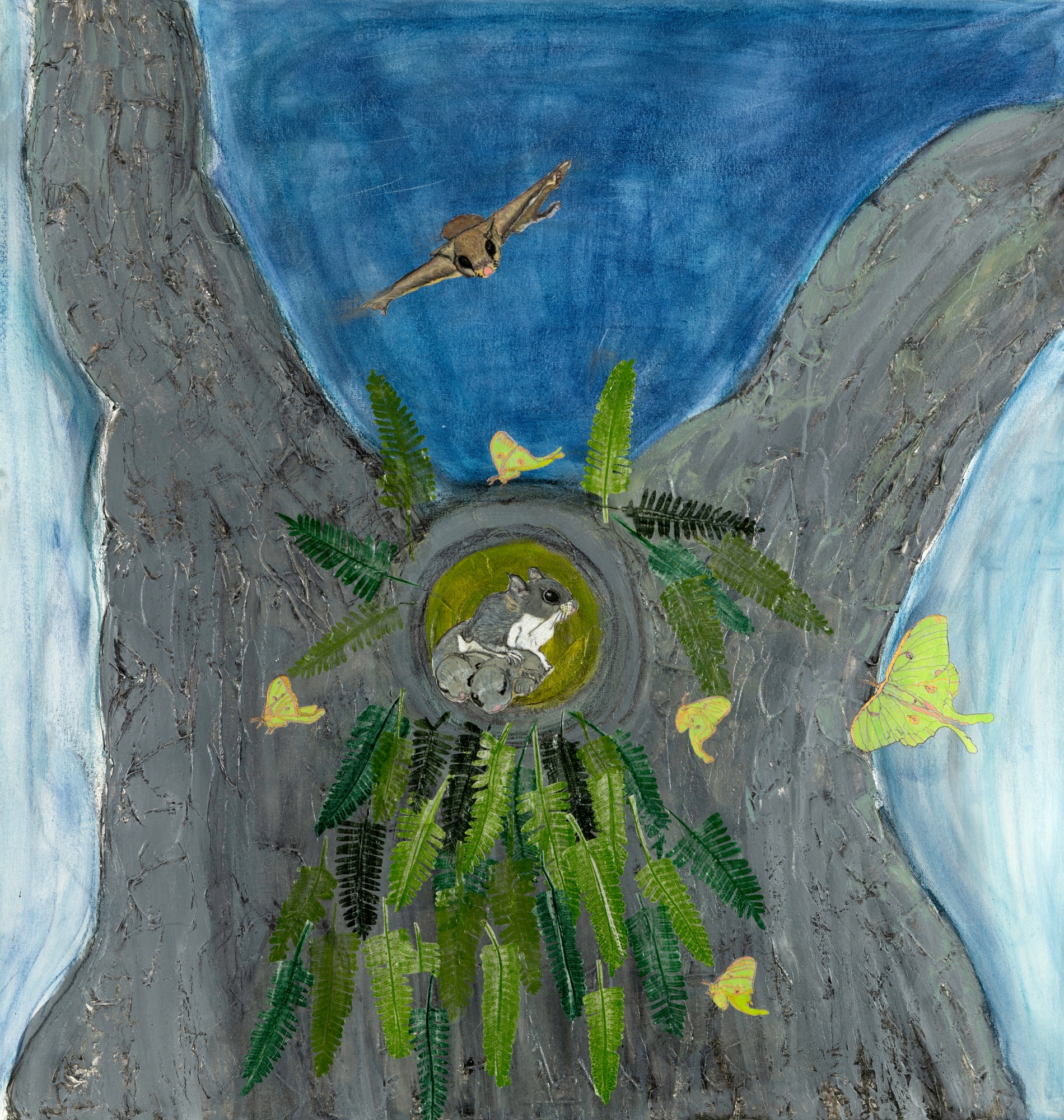 Decoupage on Canvas - hand drawn, painted and cut cotton paper