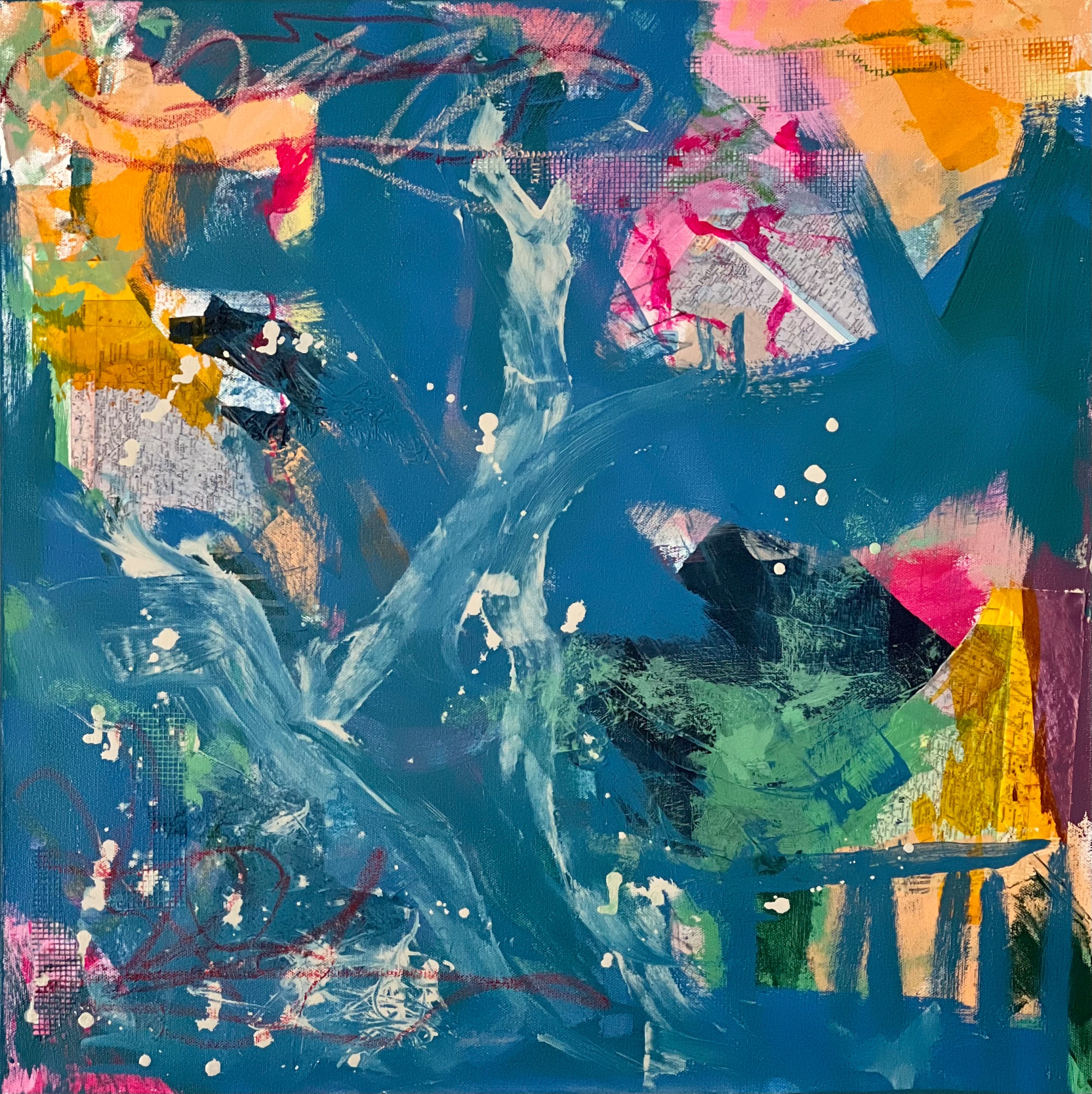 Acrylic, Collage, Charcoal, Crayon