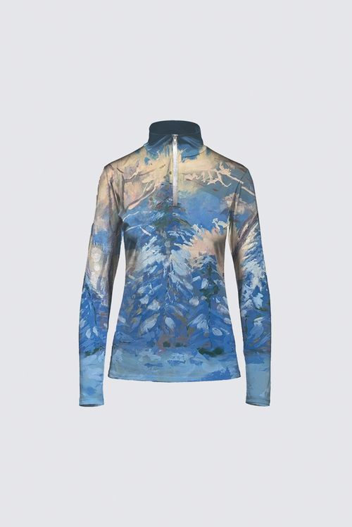 - Length: 24" - Half-zip 8" long - Premium ITY knit (95% Polyester, 5% Spandex) - Machine Wash & Wrinkle-free (great for travelling!) - Sizes XS to XL - Made in Canada Artist name: Alice Eckles Studio from Middlebury (village), United States Artwork name: Cardinal in snow scene