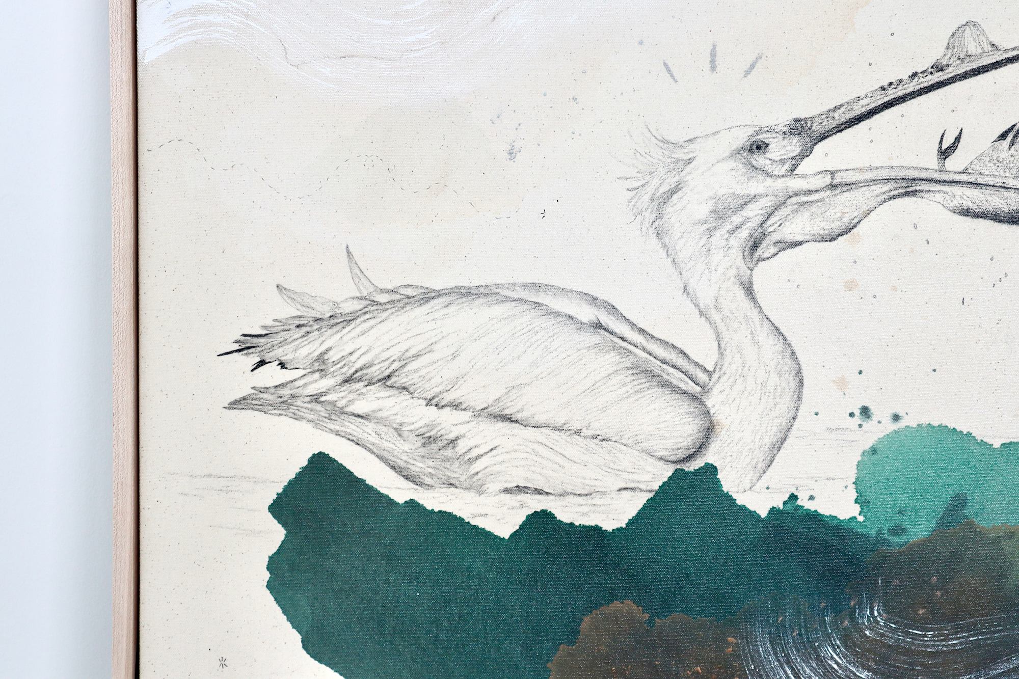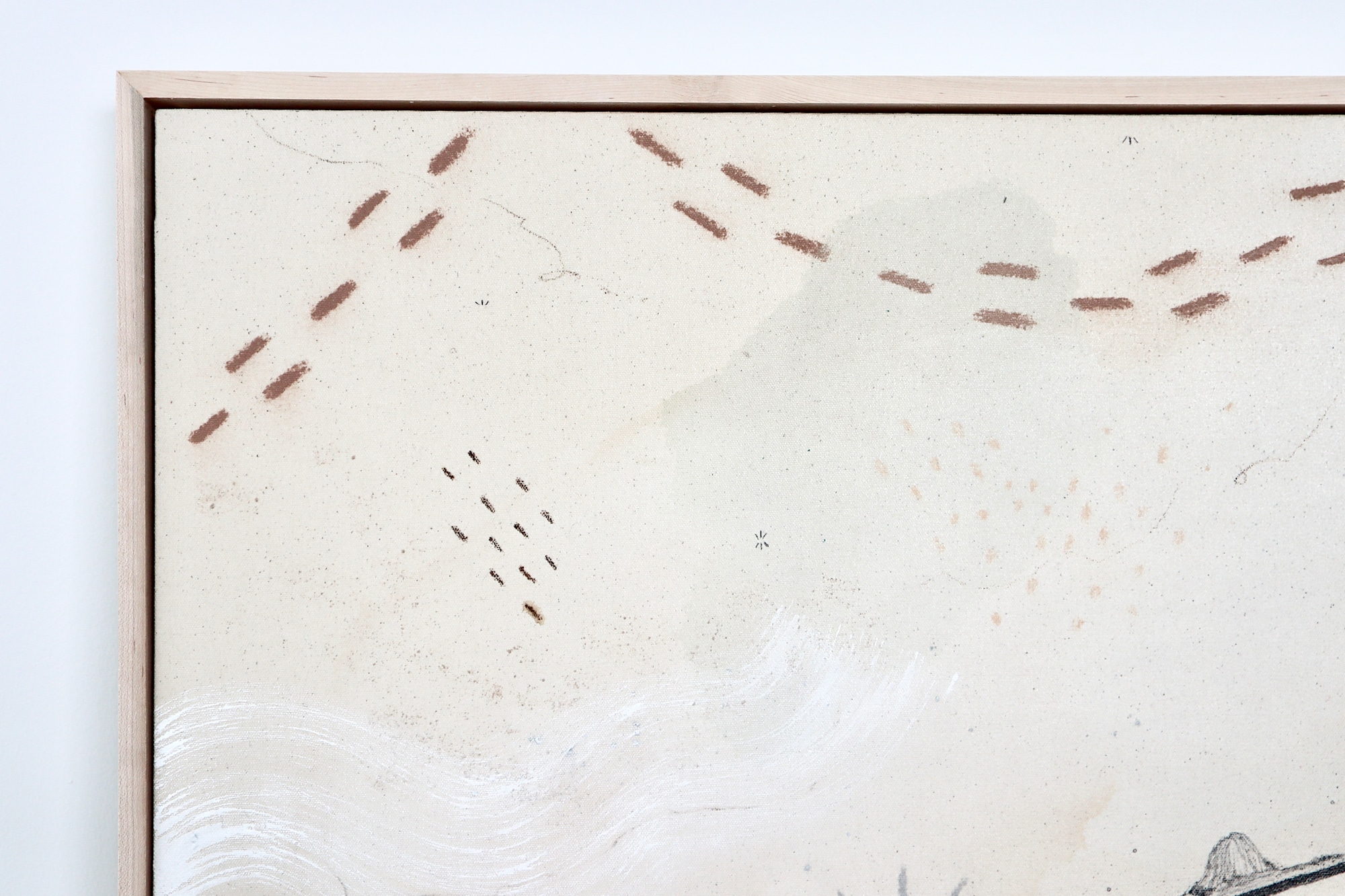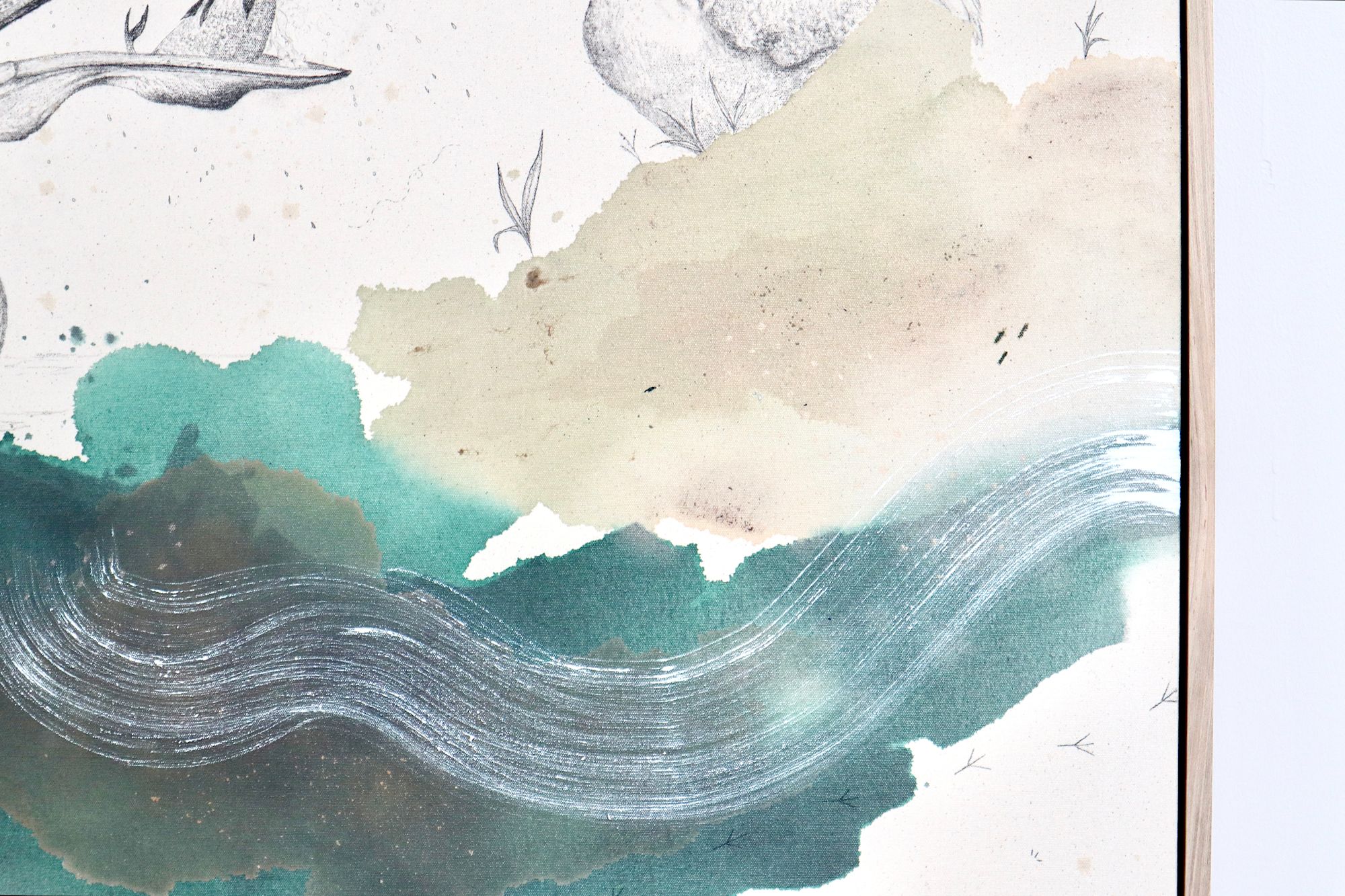 Original mixed media on raw stretched canvas with maple float frame. Alternative hardwood frames available upon request.