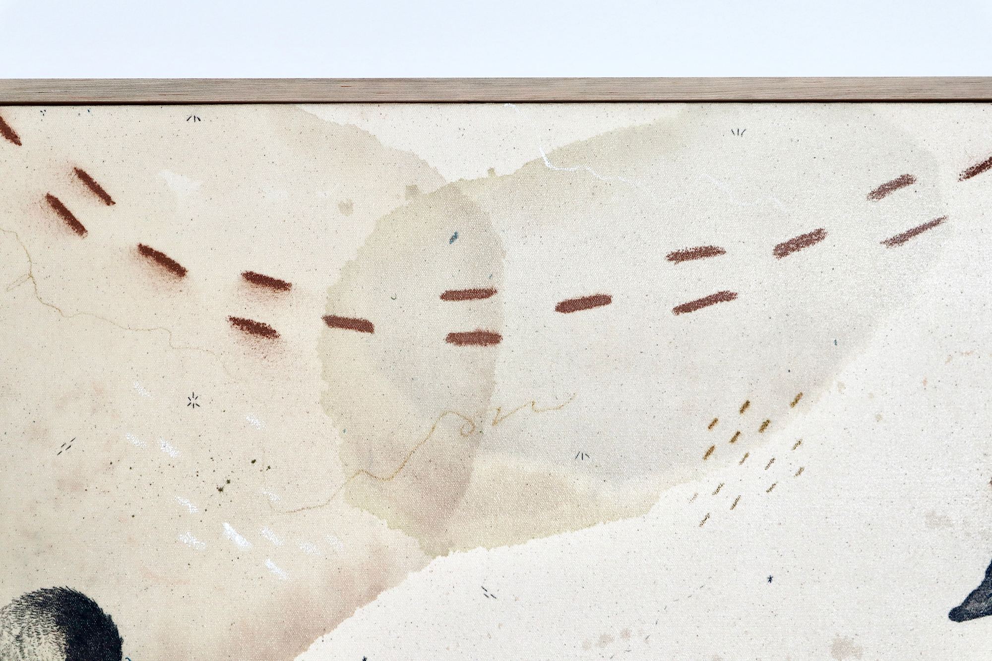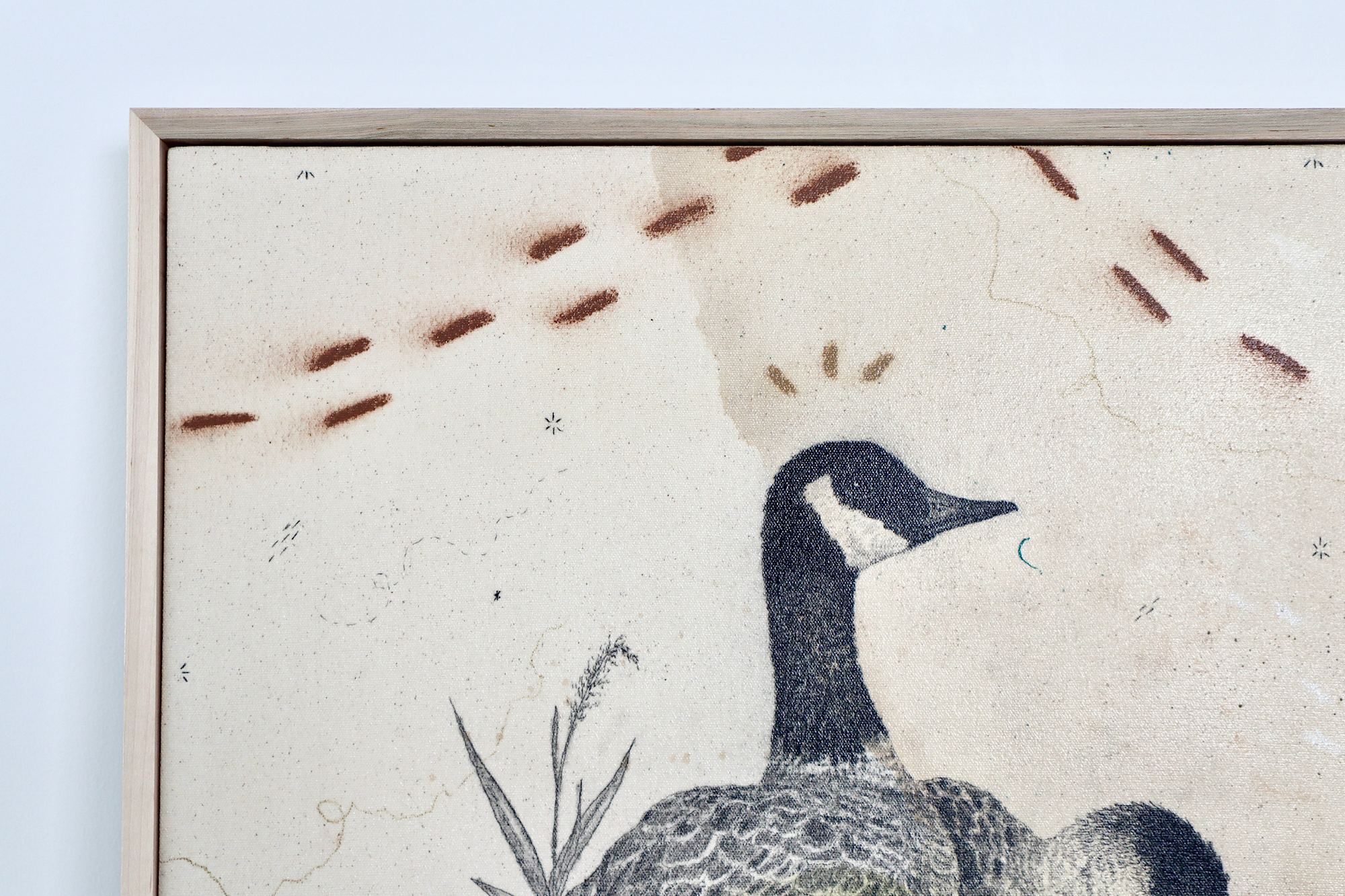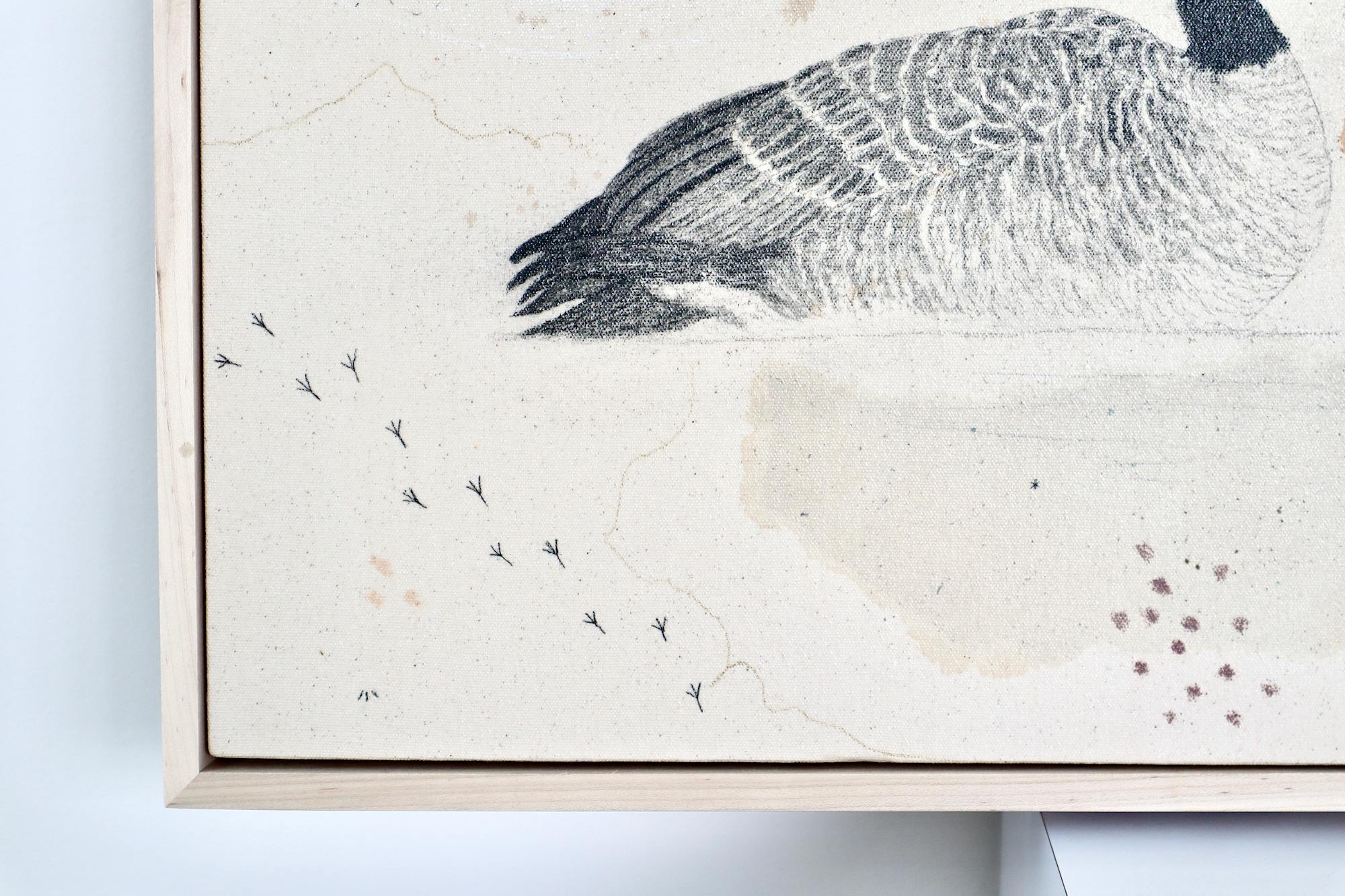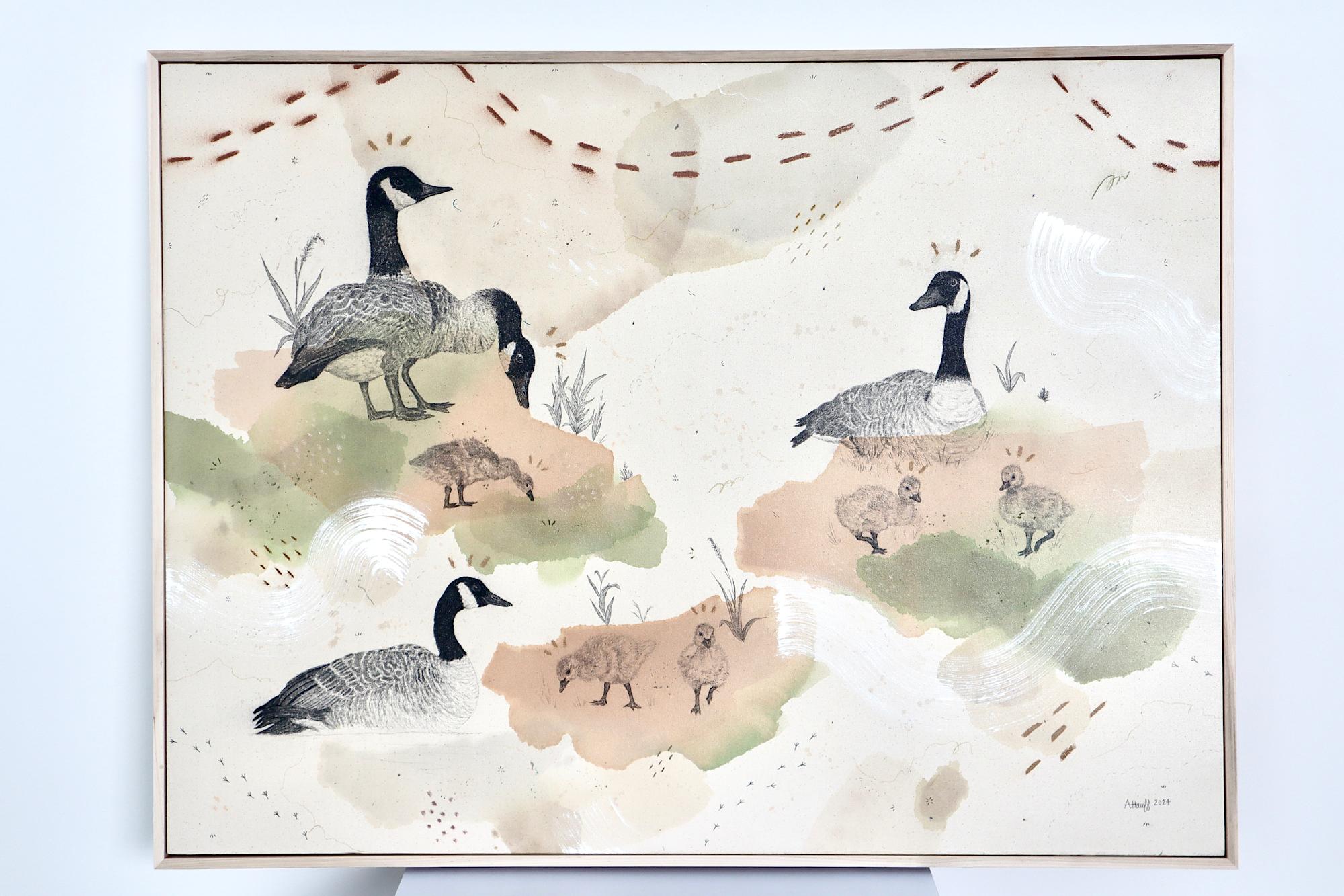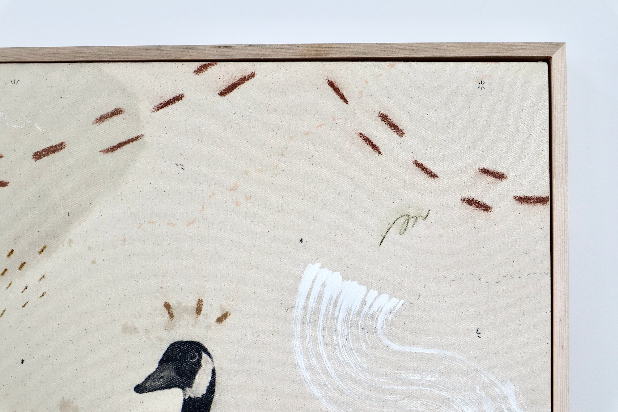 Original mixed media on raw stretched canvas with maple float frame. Alternative hardwood frames available upon request.
