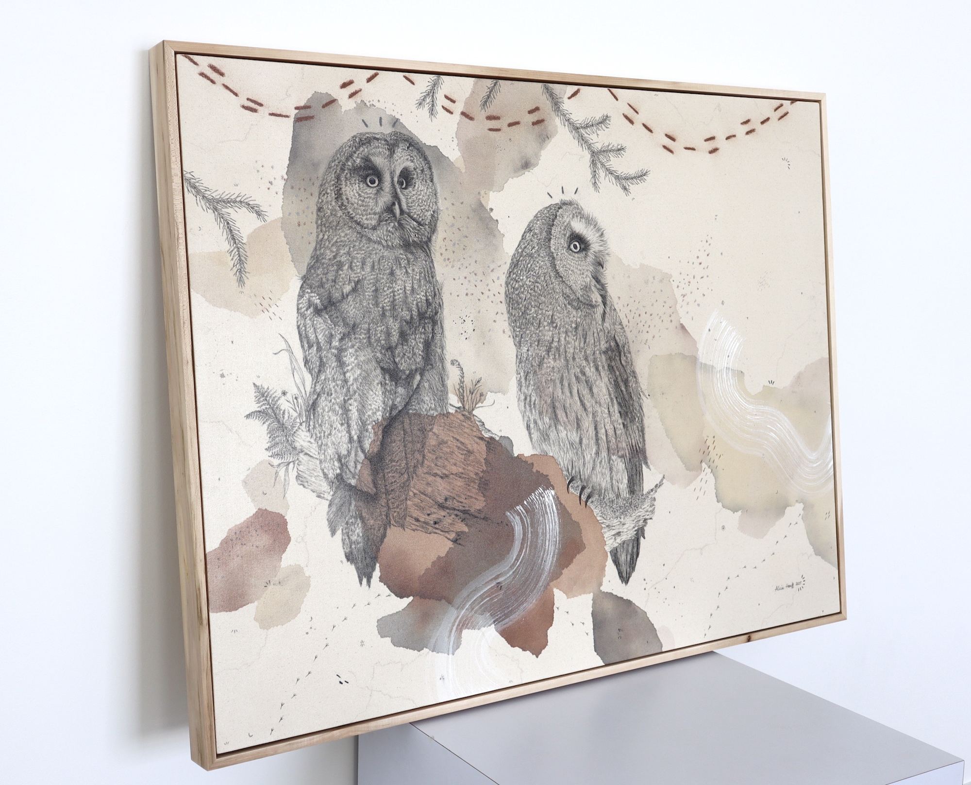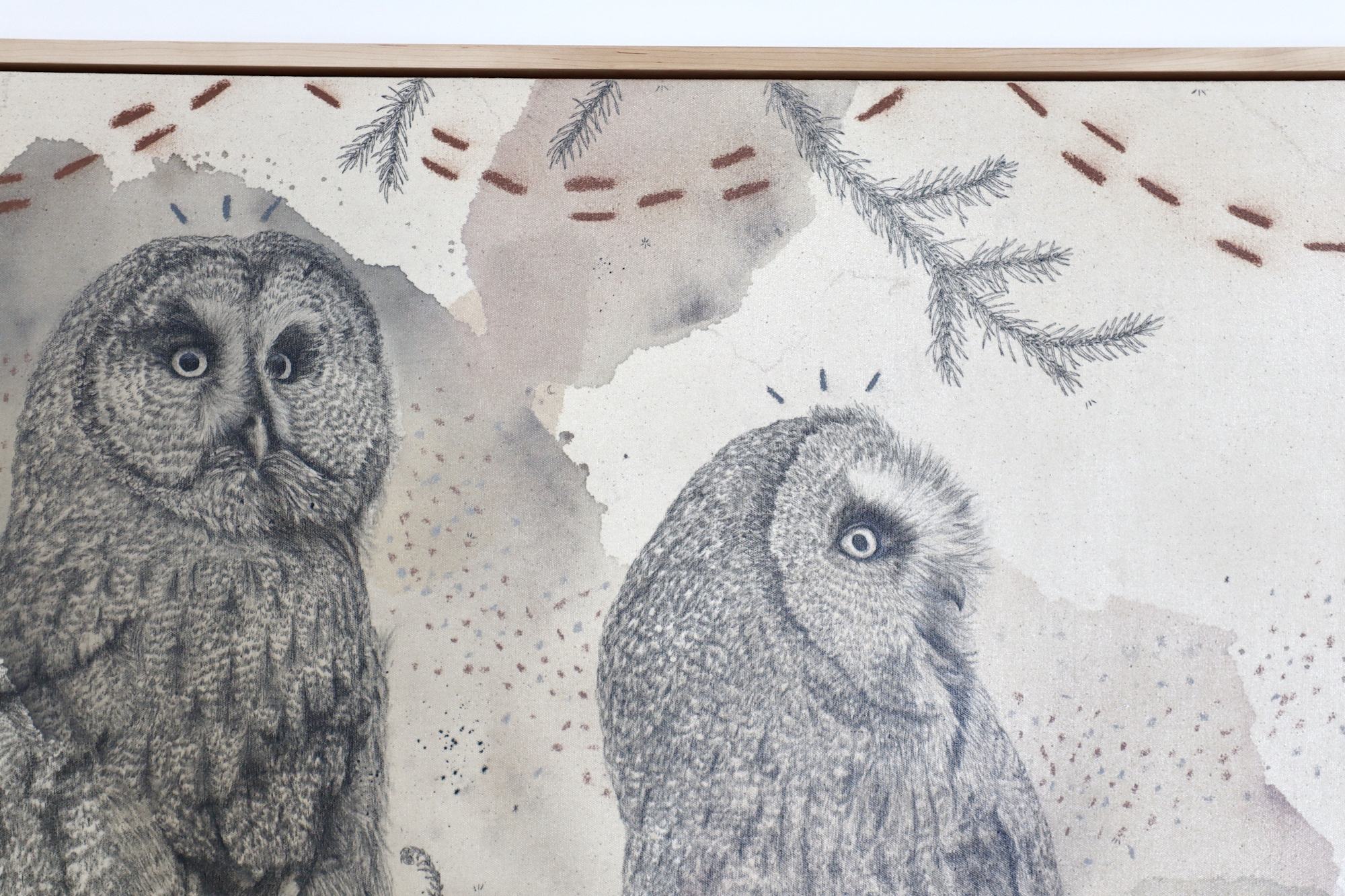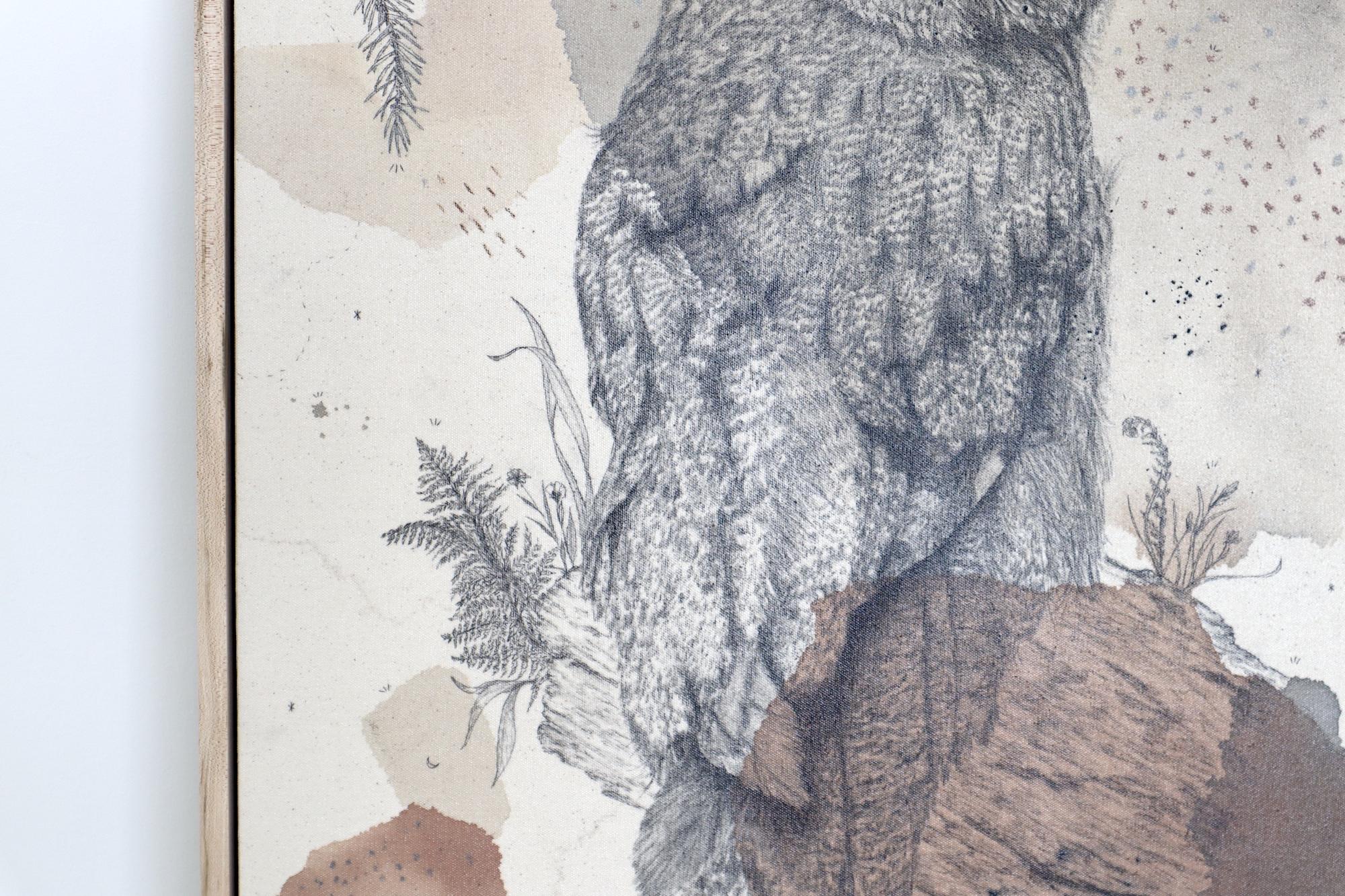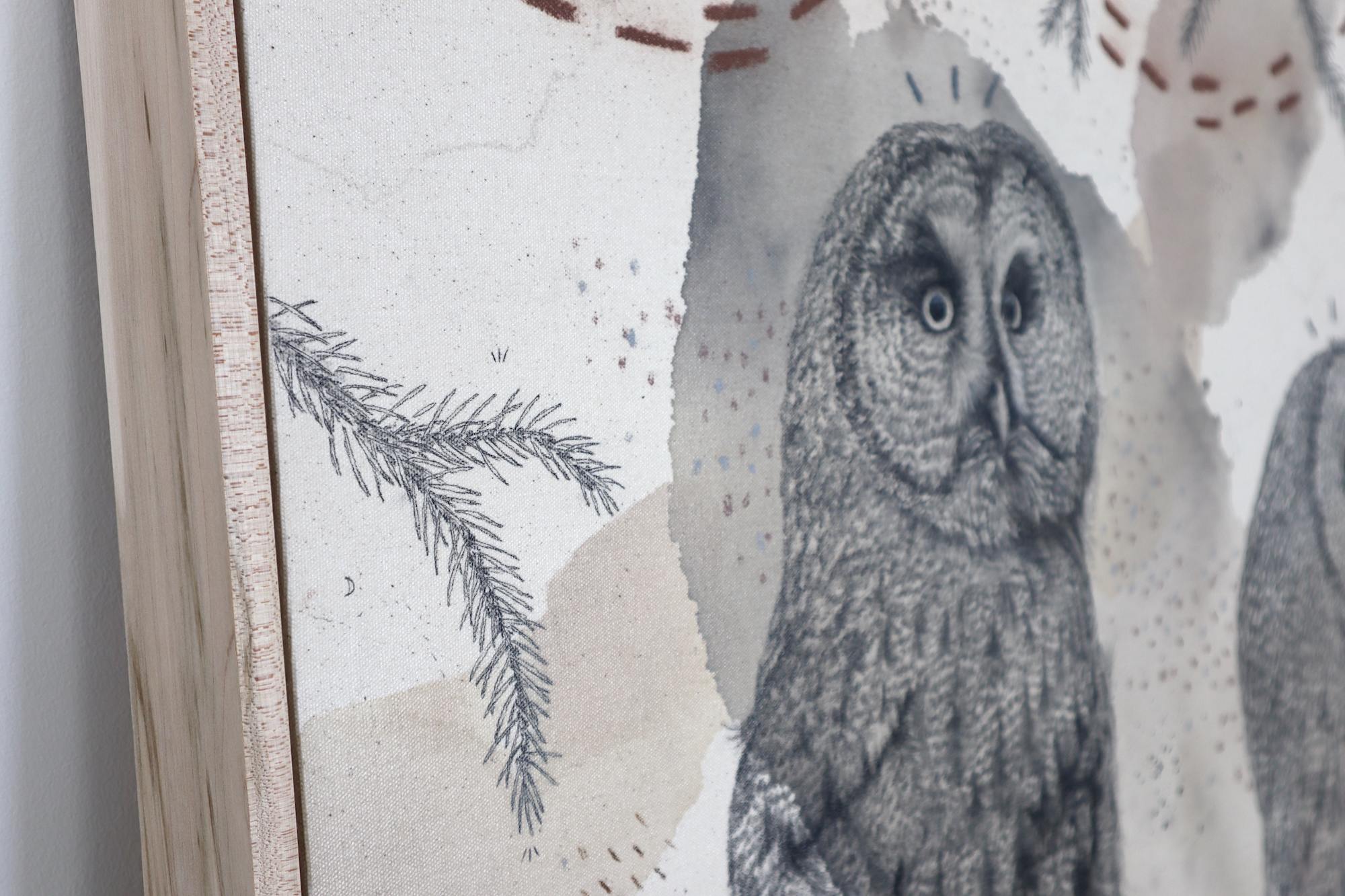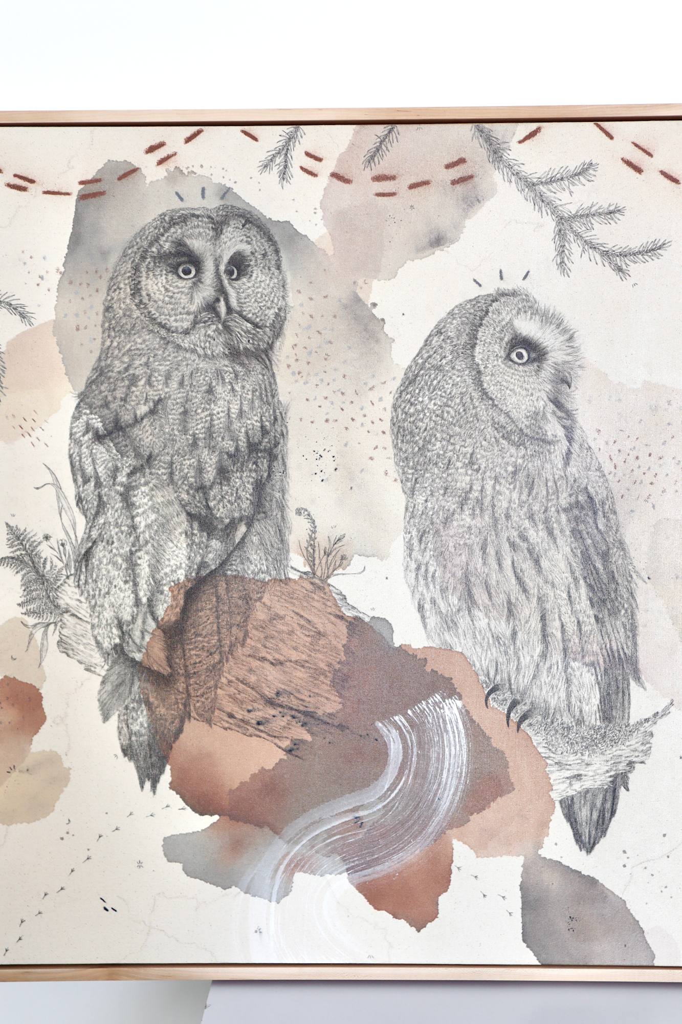 The “Wise Old Owl” stereotype feels fitting for this dapper owl, dressed in gray with a white ‘beard’ and ‘eyebrows’ on his expressive facial disc. He is one of the few species of owls with asymmetrical ear cavities, helping him hunt by sound with precision. He can be seen floating quietly over a meadow or opening in evergreen forests, another boreal forest inhabitant. They are nonmigratory but occasionally migrate further south in search of food.