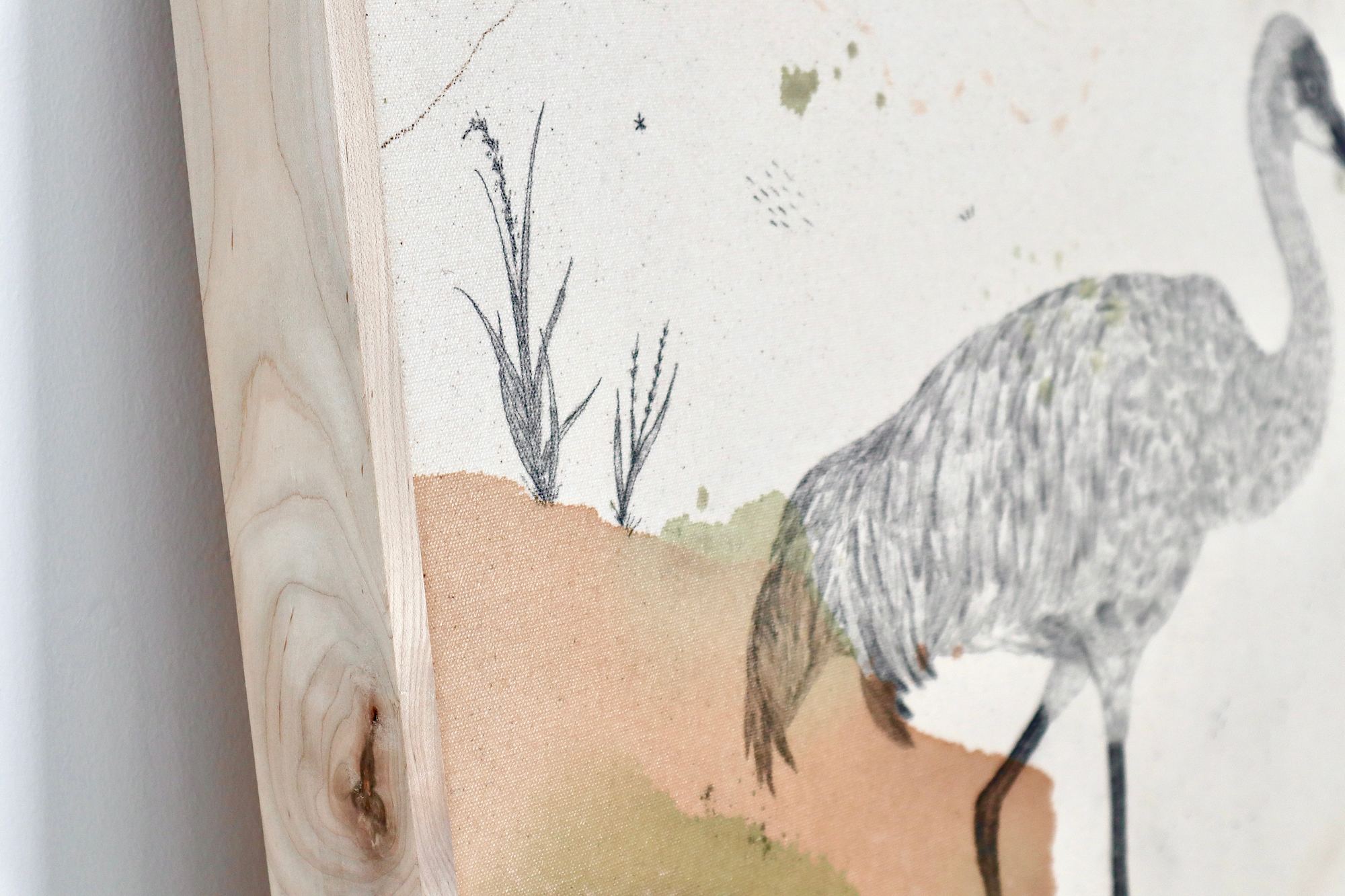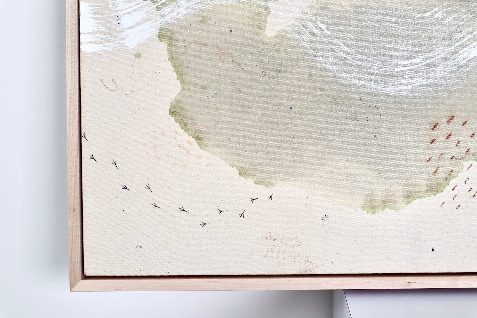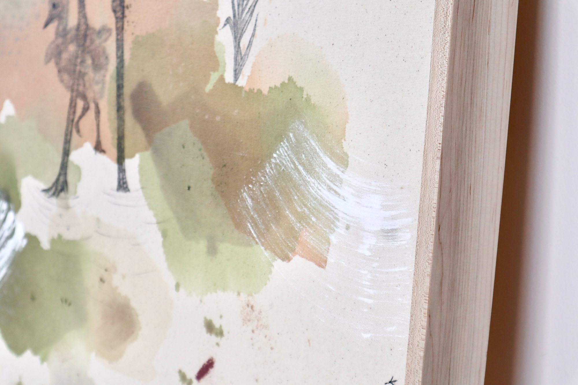Original mixed media on raw stretched canvas with maple float frame. Alternative hardwood frames available upon request. Alternative hardwood frames available upon request.