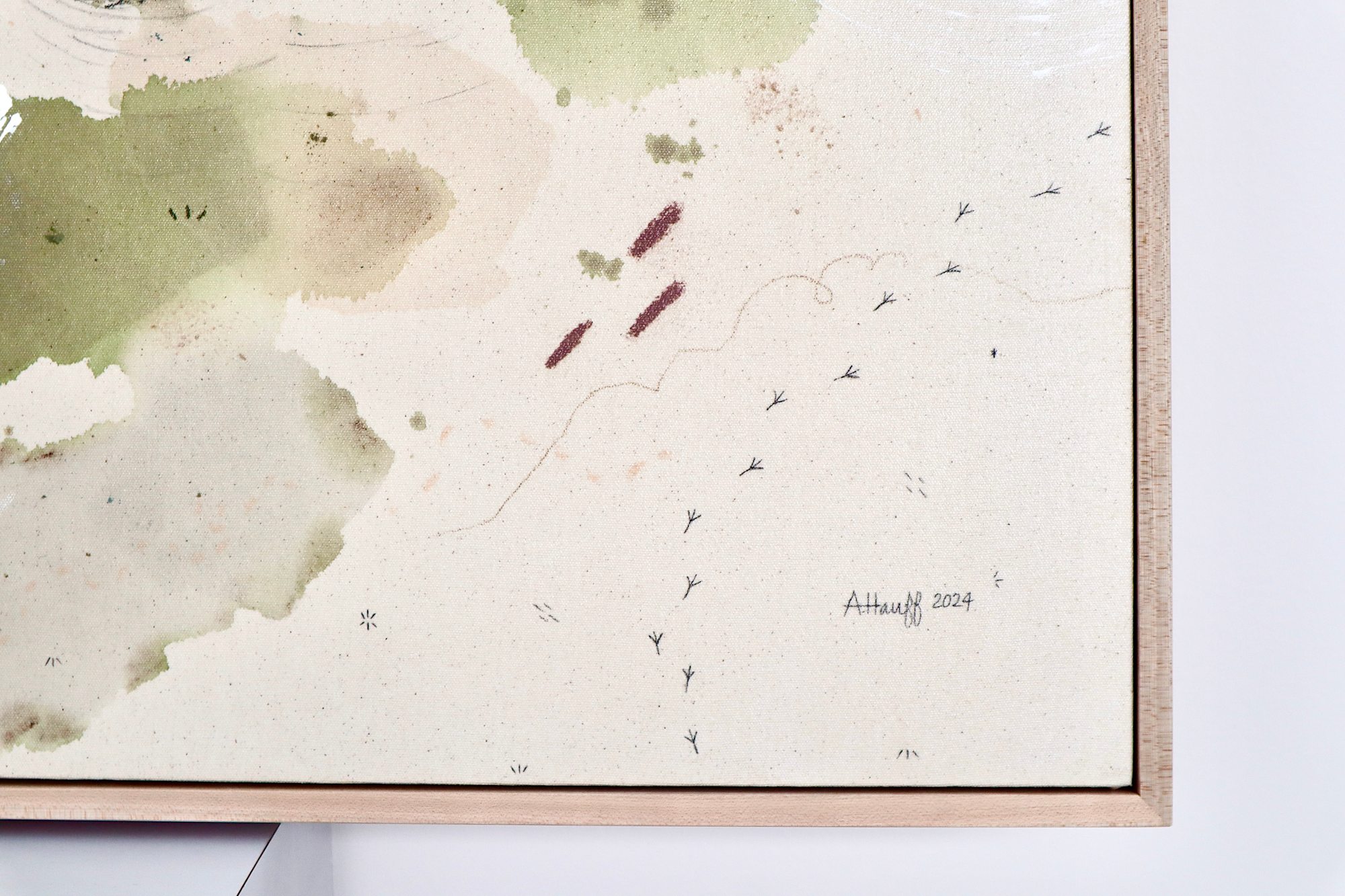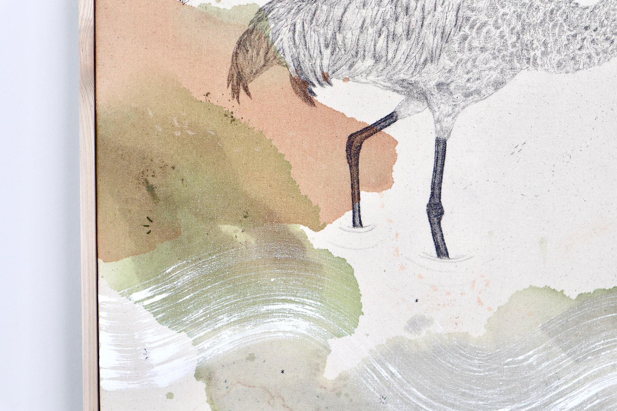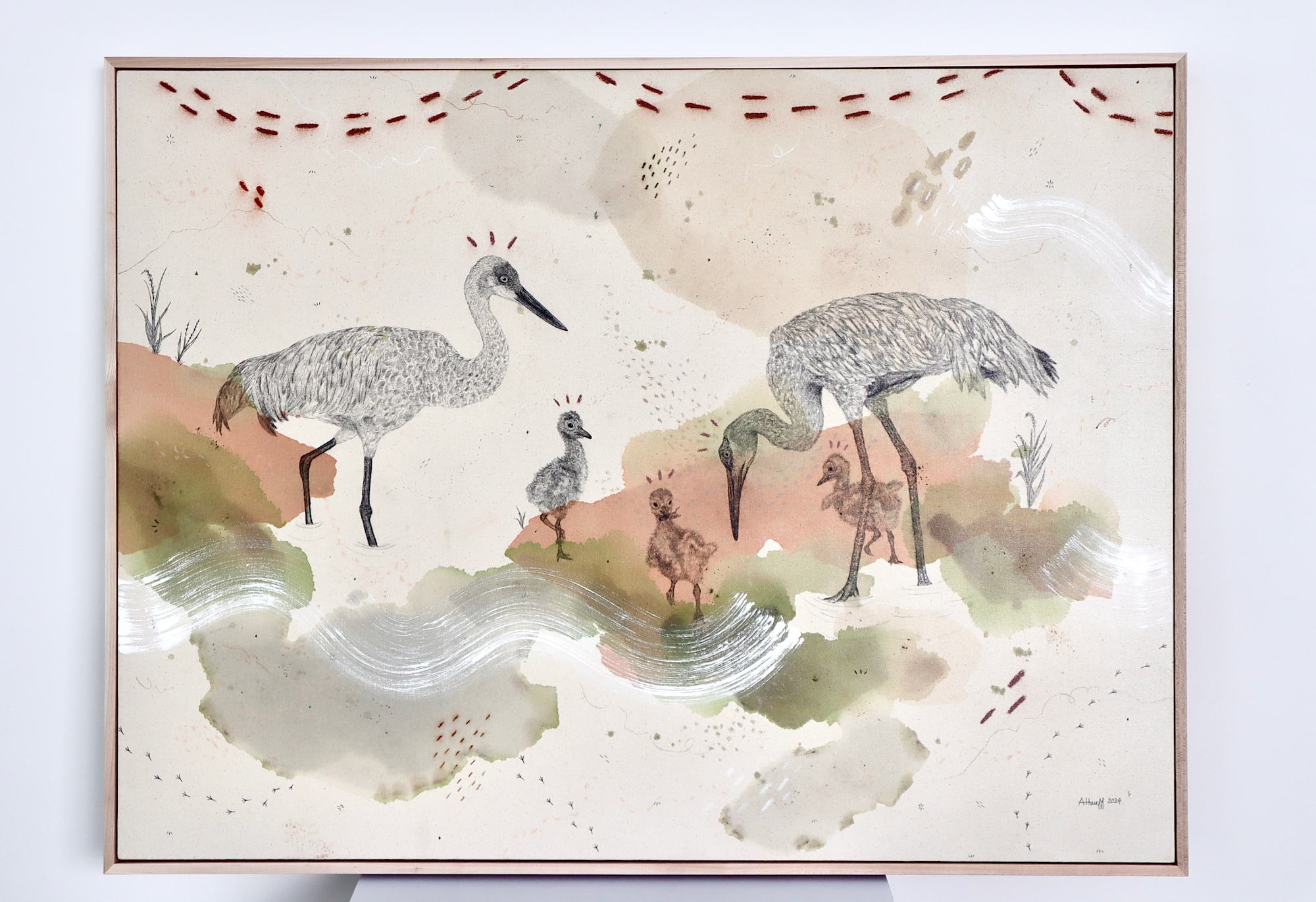 Original mixed media on raw stretched canvas with maple float frame. Alternative hardwood frames available upon request. Alternative hardwood frames available upon request.