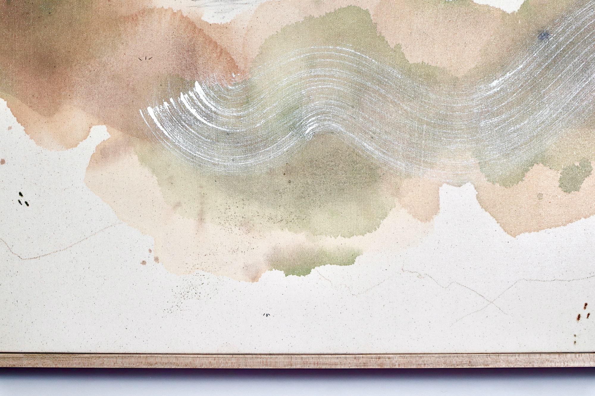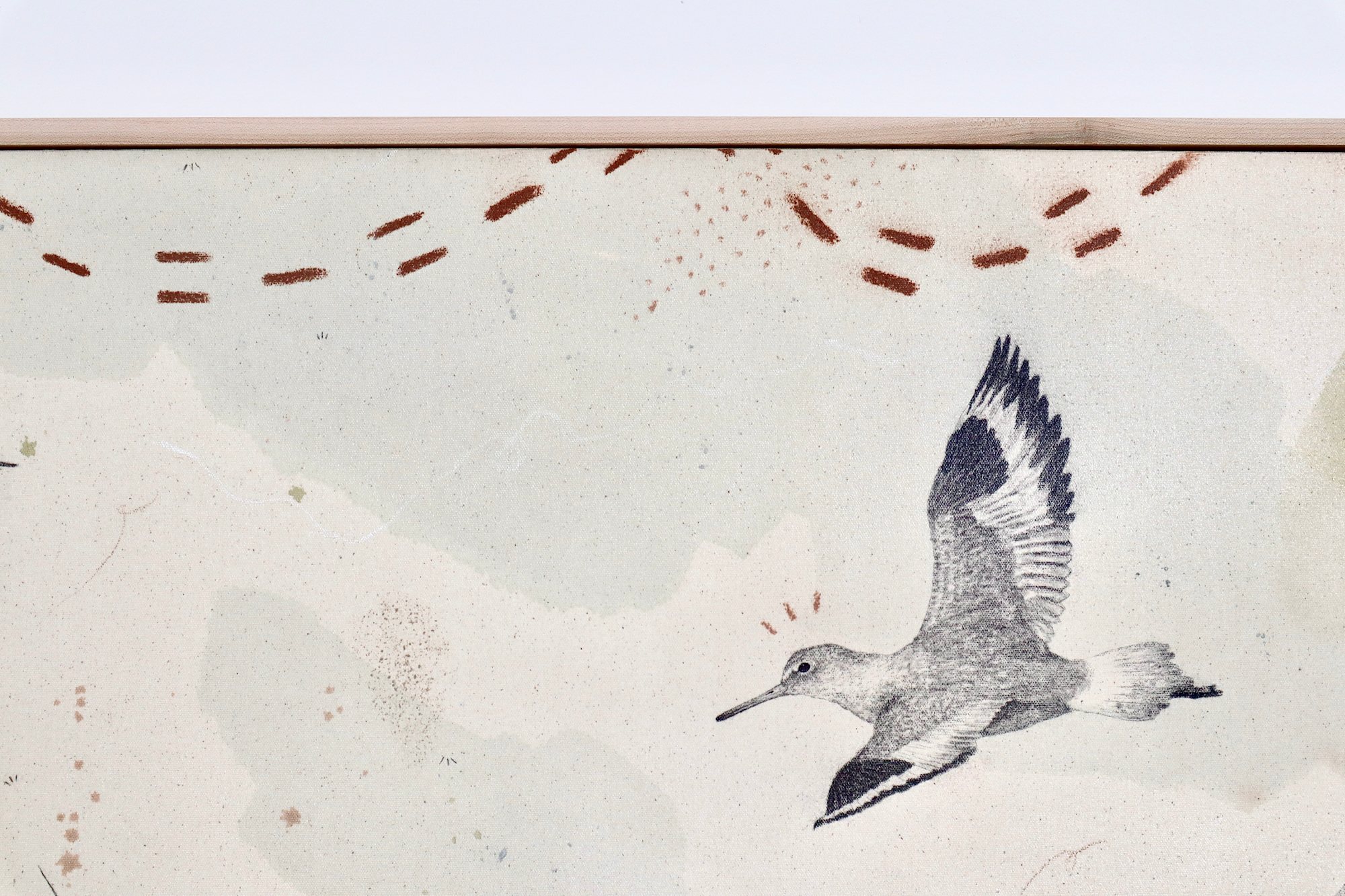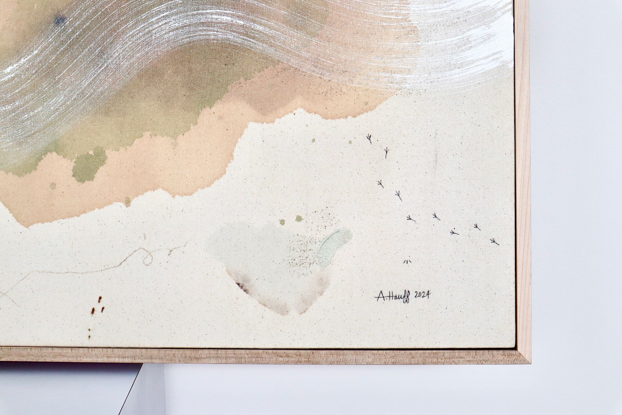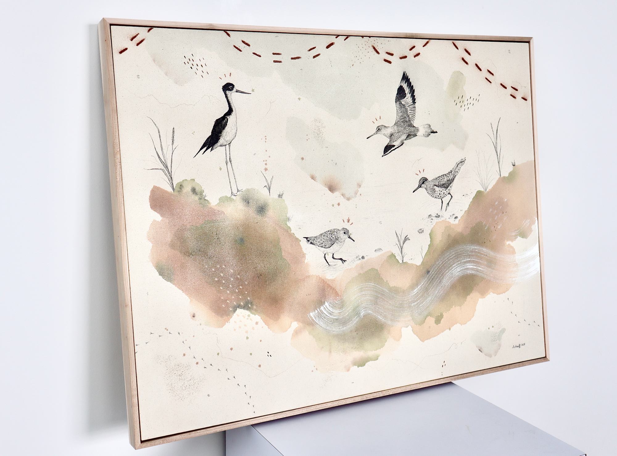 Original mixed media on raw stretched canvas with maple float frame. Alternative hardwood frames available upon request.