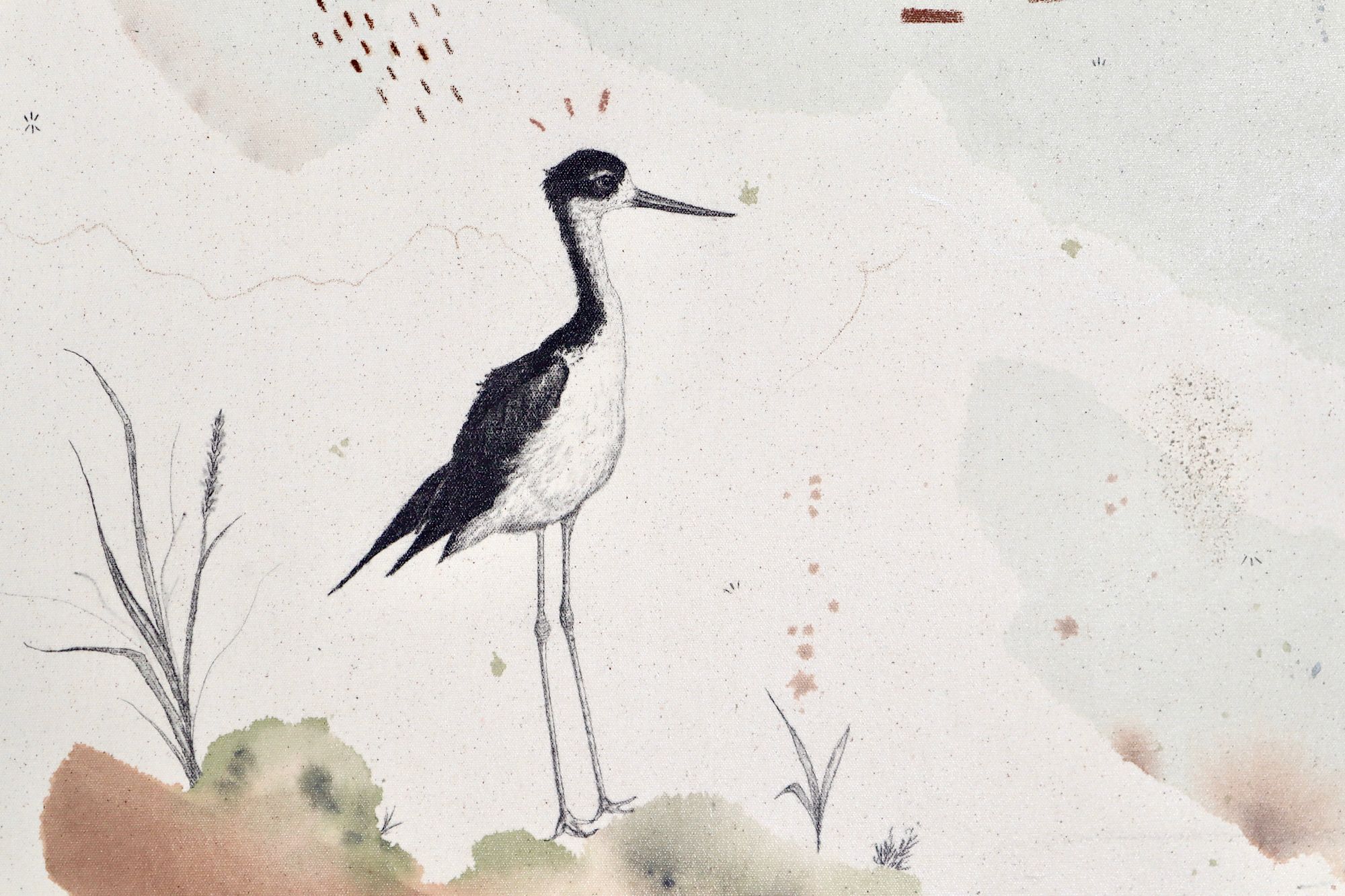Though appearing dainty, this shorebird does well in a variety of habitats, natural or artificial. They inhabit shallow wetlands with little vegetation. When not nesting or preening, they wade in shallow waters in search of aquatic invertebrates, crustaceans, insects, snails, and tiny fish. They nest on the ground just above water, and both build the nest. Both sexes participate in incubation and chick-rearing, though males appear to accompany older chicks more often than females. The pair bond is maintained through nesting and chick rearing, but if a nest fails, stilts sometimes begin again with a different mate. Stilts nest in loose colonies and are considered semicolonial, defending individual territories (and guarding mates) but joining with other nesting stilts to drive out threats.