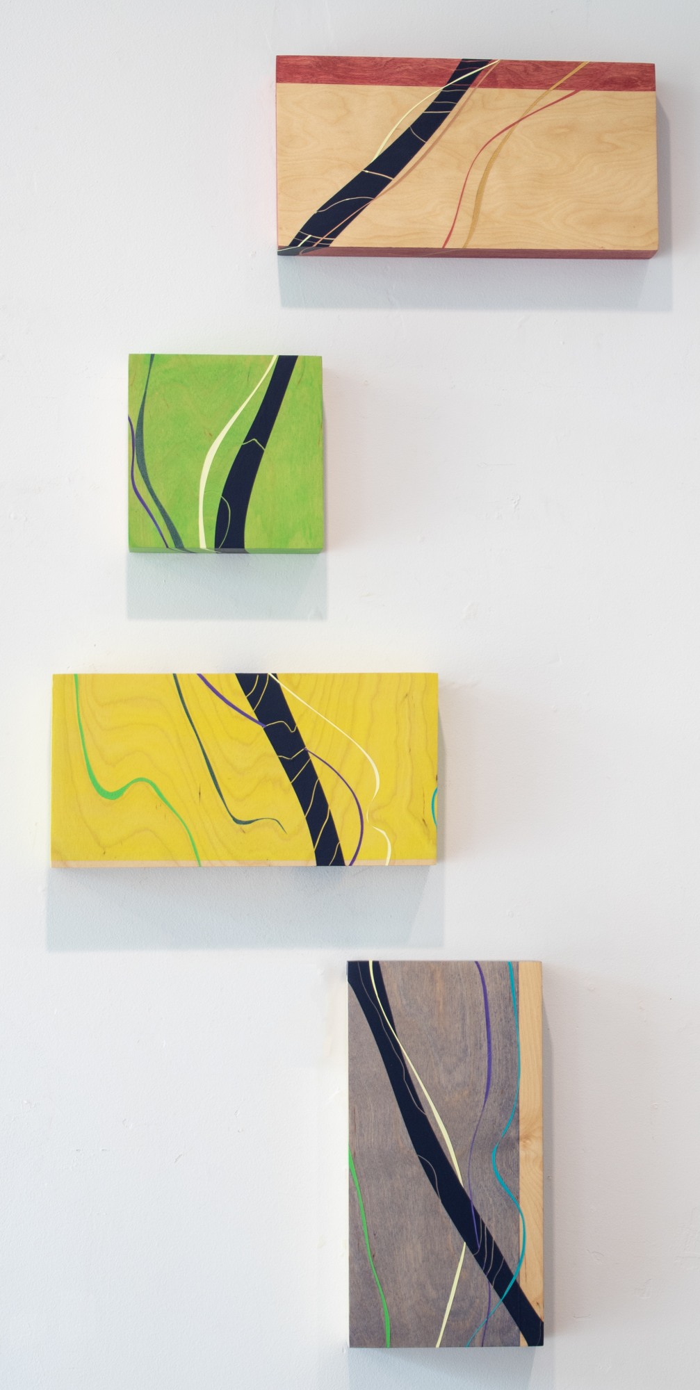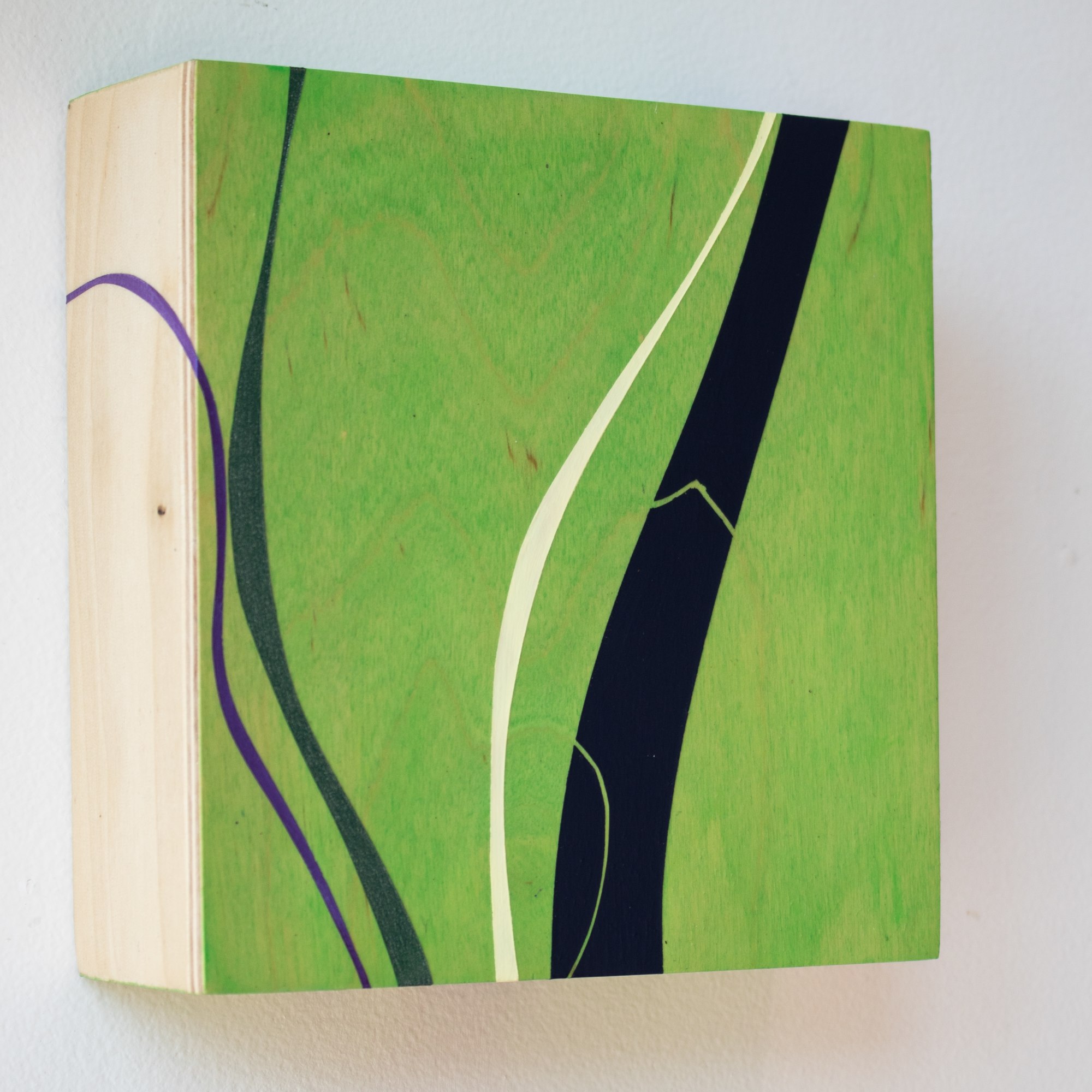 One in a series of 47 wood panels, each representing a year of my life. The timeline was completed for my 2020 show at the Georgetown Art Center, but is now incomplete as I've grown older. I made this work for a show with other artists who all paint on wood and use the grain lines visually and conceptually. I wanted to more concretely connect the grain--each line, one year of the tree's life--to myself. Every painting has a different base color, a nod to the ways the way we physically and emotionally change from year to year. Like lessons learned from past experiences or connections made, lost and reestablished over time, they feature bold and subtle lines weaving from one panel to the next. Every panel also features exposed raw wood, a reminder that underneath all of the paint and life experiences remains something more primal and connected to nature.