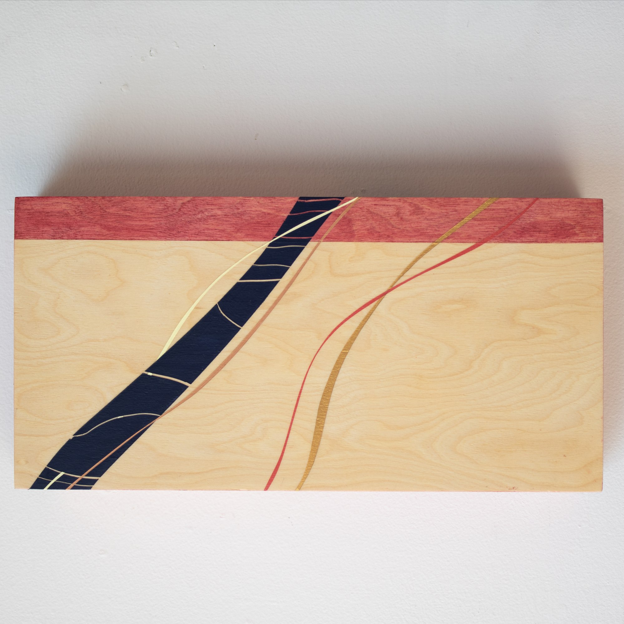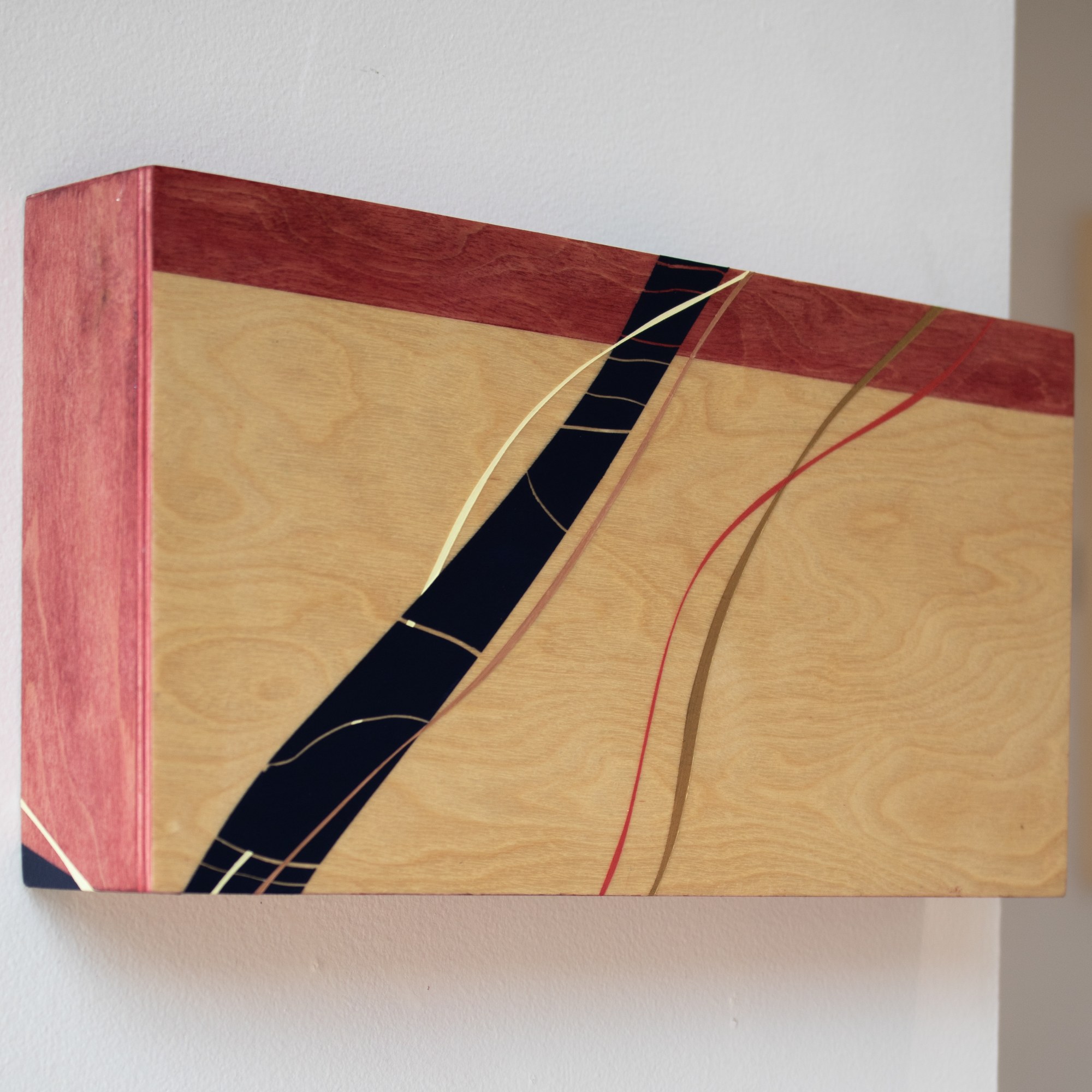 One in a series of 47 wood panels, each representing a year of my life. The timeline was completed for my 2020 show at the Georgetown Art Center, but is now incomplete as I've grown older. I made this work for a show with other artists who all paint on wood and use the grain lines visually and conceptually. I wanted to more concretely connect the grain--each line, one year of the tree's life--to myself. Every painting has a different base color, a nod to the ways the way we physically and emotionally change from year to year. Like lessons learned from past experiences or connections made, lost and reestablished over time, they feature bold and subtle lines weaving from one panel to the next. Every panel also features exposed raw wood, a reminder that underneath all of the paint and life experiences remains something more primal and connected to nature.