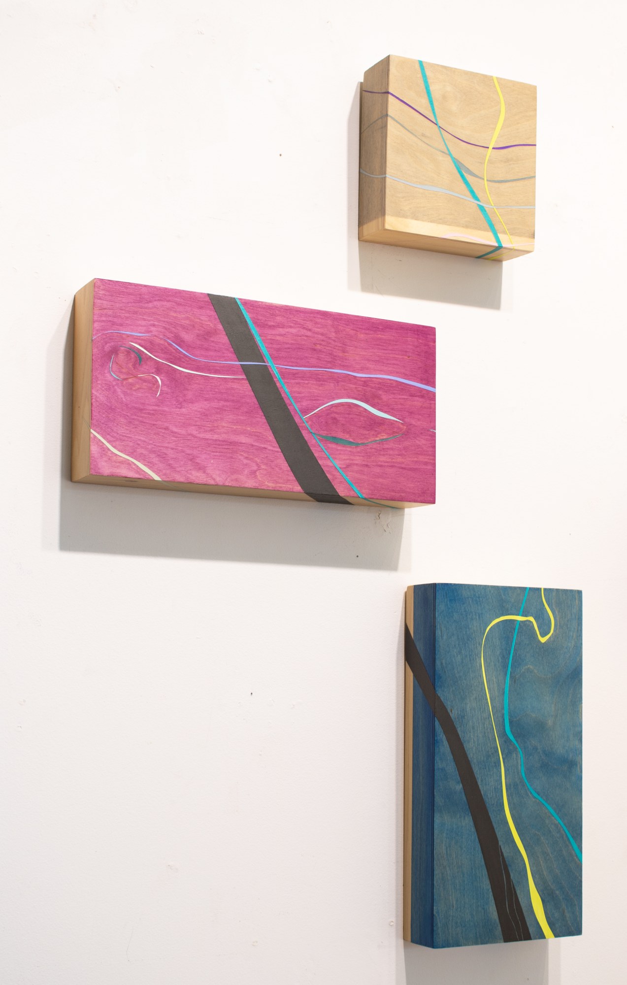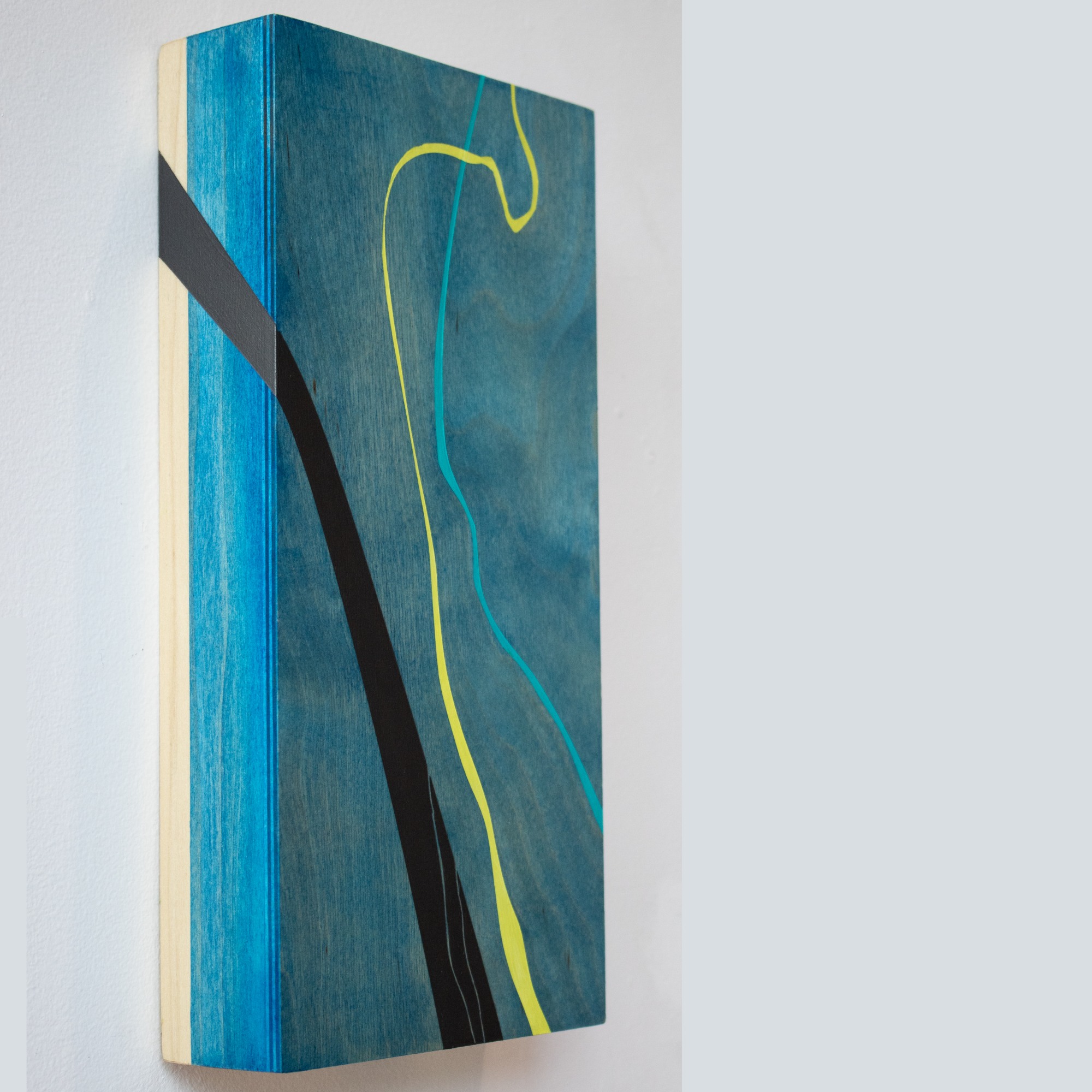 One in a series of 47 wood panels, each representing a year of my life. The timeline was completed for my 2020 show at the Georgetown Art Center, but is now incomplete as I've grown older. I made this work for a show with other artists who all paint on wood and use the grain lines visually and conceptually. I wanted to more concretely connect the grain--each line, one year of the tree's life--to myself. Every painting has a different base color, a nod to the ways the way we physically and emotionally change from year to year. Like lessons learned from past experiences or connections made, lost and reestablished over time, they feature bold and subtle lines weaving from one panel to the next. Every panel also features exposed raw wood, a reminder that underneath all of the paint and life experiences remains something more primal and connected to nature.