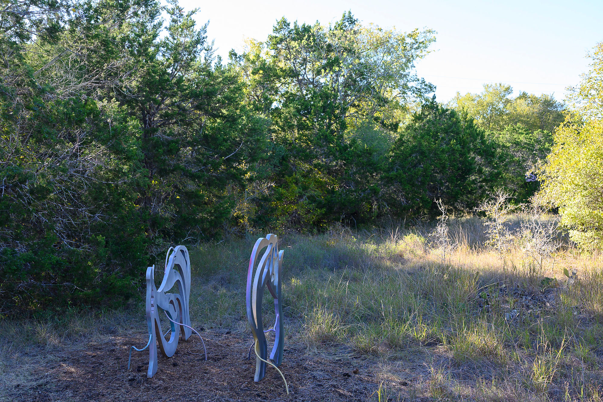 The Woodland Trail is a 1/8th mile flat, curving walk through a space that feels much like any greenbelt around Austin. Unlike most of the Wildflower Center, it is not planted with manicured flower gardens. It was the perfect space to create an experience of discovery. Each artwork leads the viewer either further down the path or guides their eye to a spot deeper into the tangled woods. Simply noticing our everyday environments in more detail, with a new sense of wonder, can have a profoundly calming affect on the nervous system. When we are calm, our hearts become open to the simple joys around us.