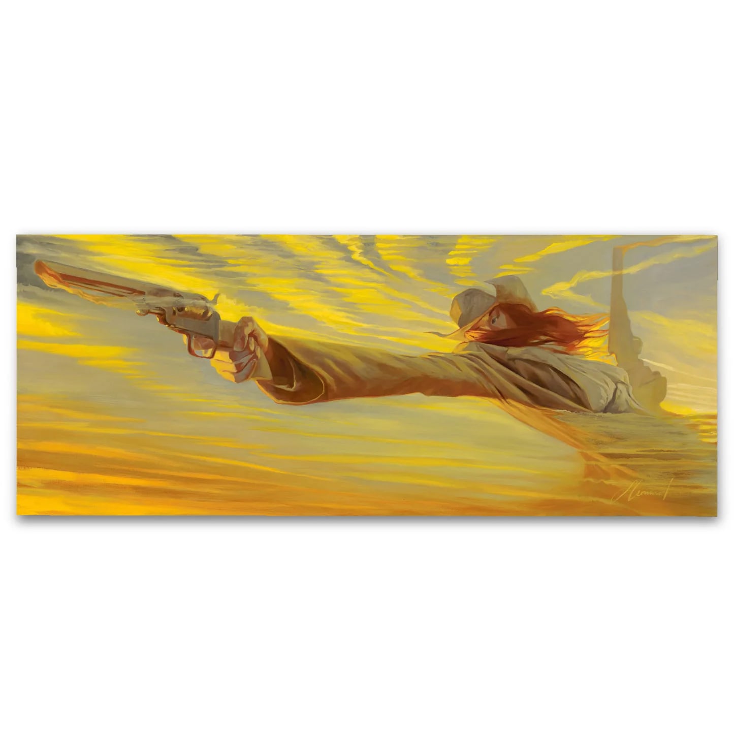 Gabe Leonard is an American artist who has gained a reputation as one of the most sought-after painters in the world. He was born and spent his early years in Wyoming, where he developed a love of sketching wildlife and exploring the rugged landscapes of the American West. With its extreme environments and beautiful landscapes, the state has deep cultural ties to the grit and grandeur of the American West. It’s these early roots that are reflected in the attitudes and personalities of his paintings. He later earned his BA in fine art from Columbus College of Art and Design in Ohio before moving to LA to pursue his artistic career.