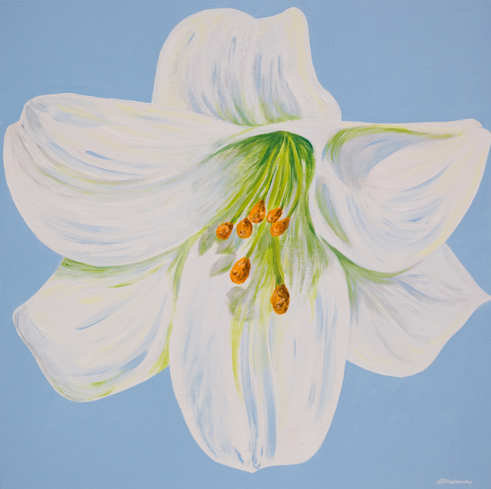 “Painted as a wedding gift chosen with the bride's favourite colours and lily flower which would be the centre-piece of her bouquet - what a lovely idea for a gift!"
