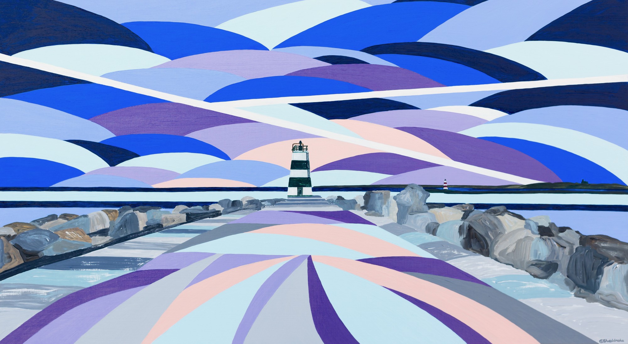 “Running alongside its partner painting, an unusual move for me to actually paint two paintings in tandem that work together as a pair ... the same beach and lighthouses but from a very different angle, with a complementary palette of colours. These two would look great displayed together!"