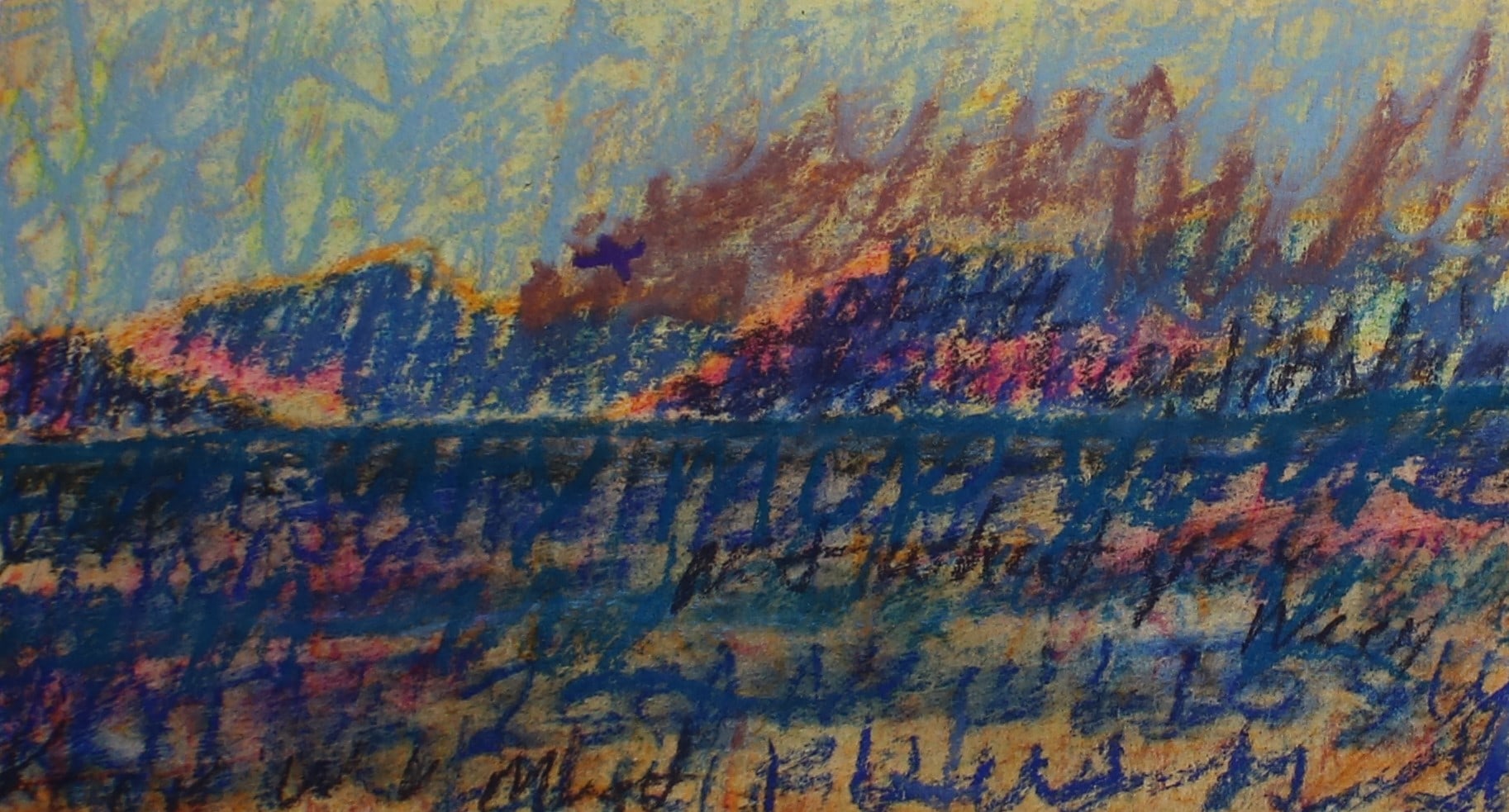 Sitting looking across Flathead Lake at the first sign of fire season. Plein-Air painting