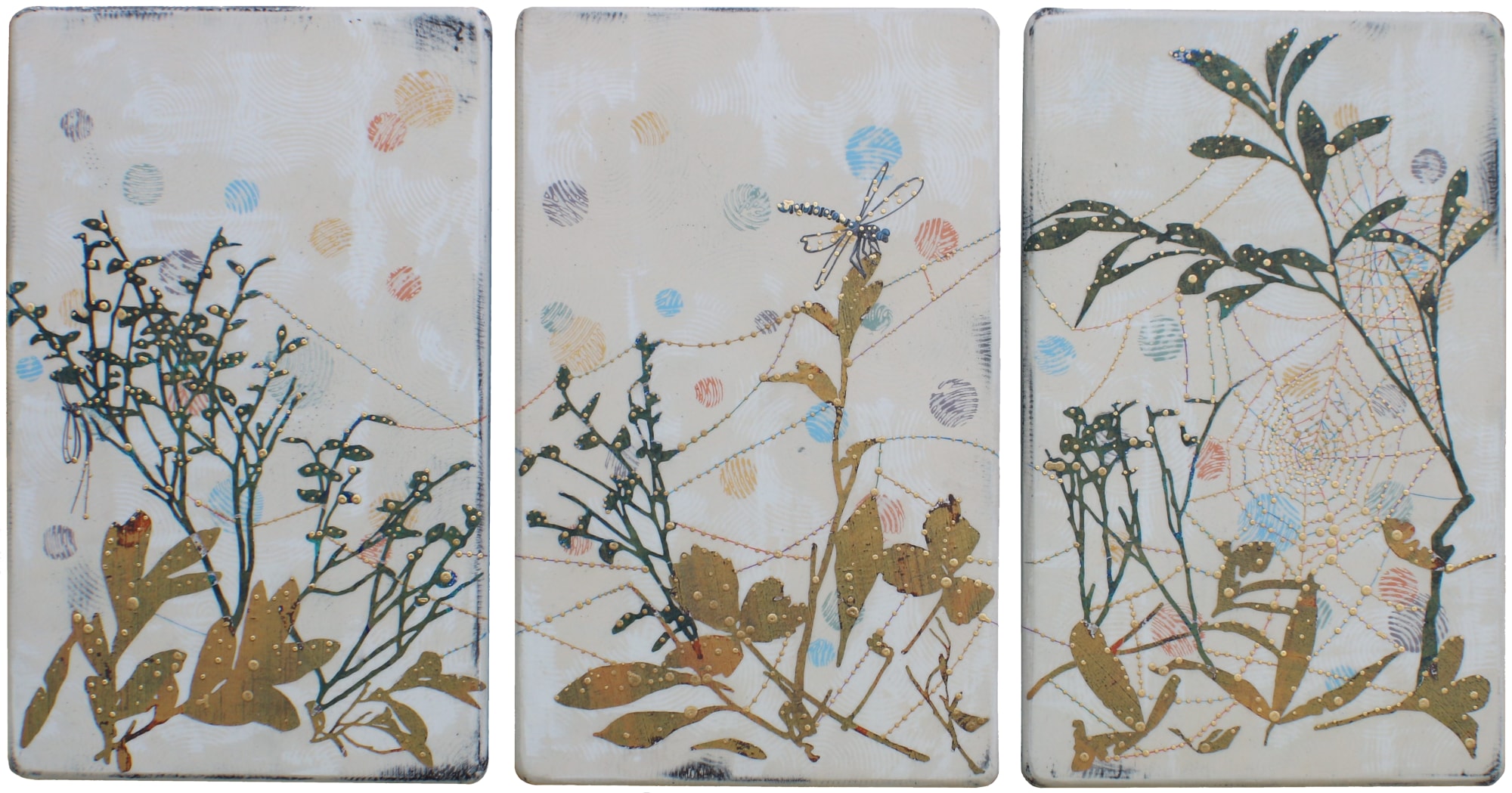 This painting, is made out of left over building material usually used in architecture. Inspired by dew mornings, and an architectural genius the orb-weaver spider.
