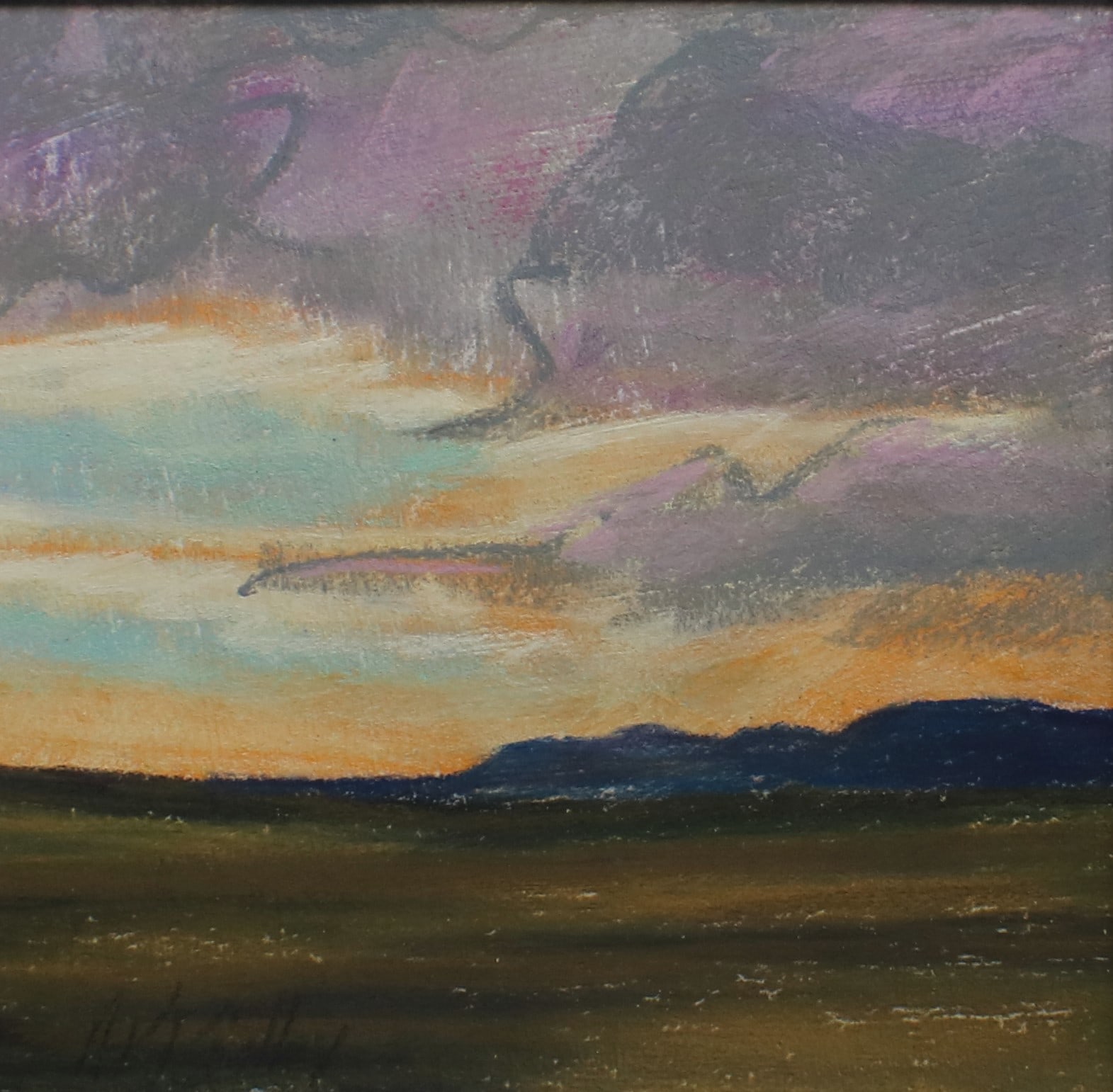 - Signature: Lower Left corner in graphite pencil; tilt the painting in light, and it shines back; otherwise, you can't see it