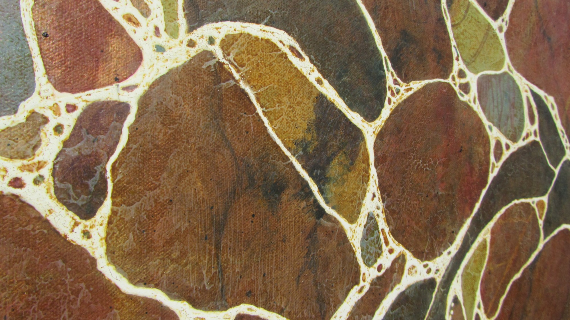A free form painting with the thought of looking down into a mountain creek seeing some brook trout. I love to create interdisciplinary impressionism art. I fell in love with historic paint and plaster techniques, usually used in a cathedral-like setting. I twist them around, add some modern mixes, and place them on a substrate so that you can have a piece of the cathedral to add to your home or business. I love the honor of commissioned work, and the first consultation is free.