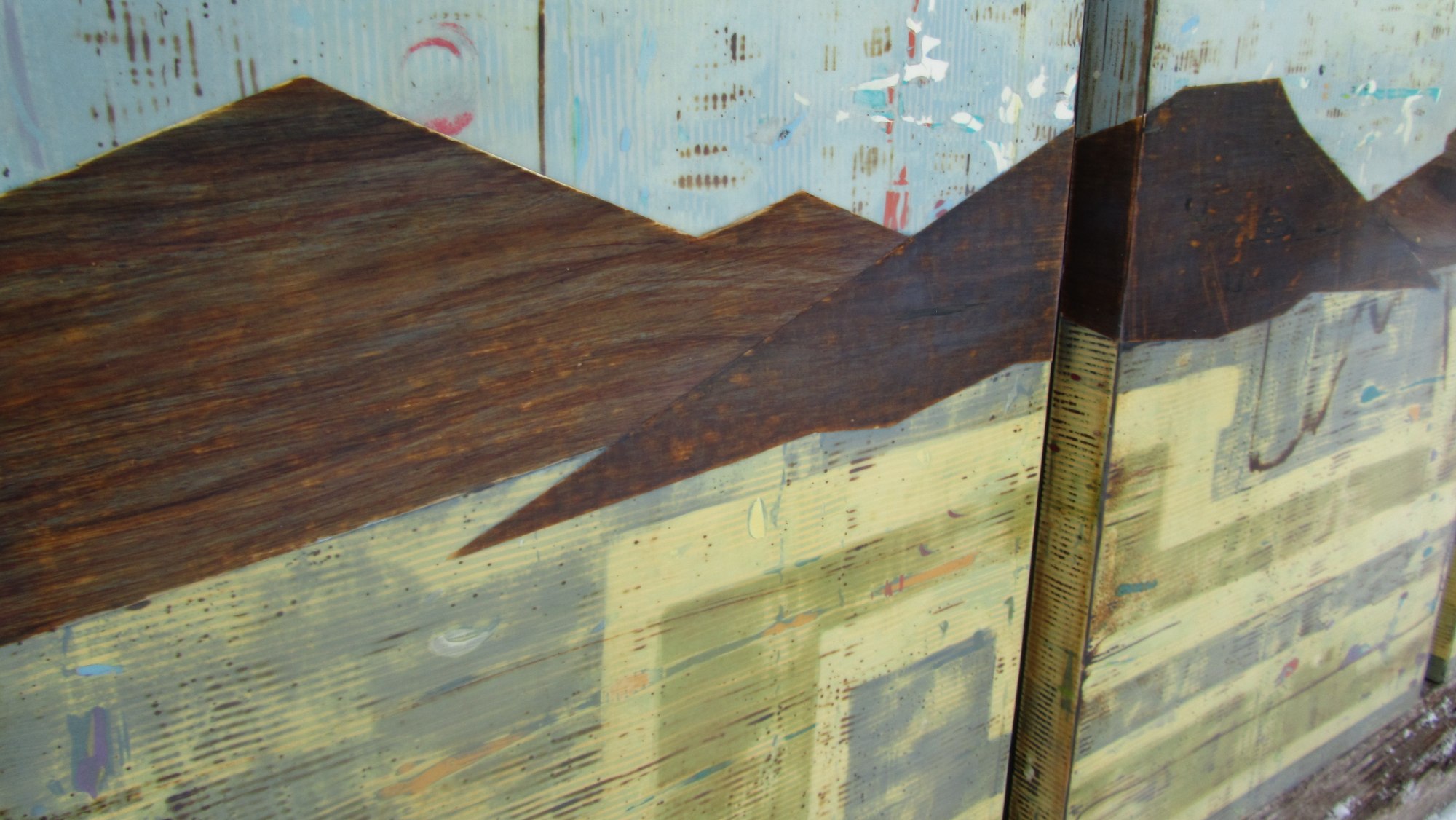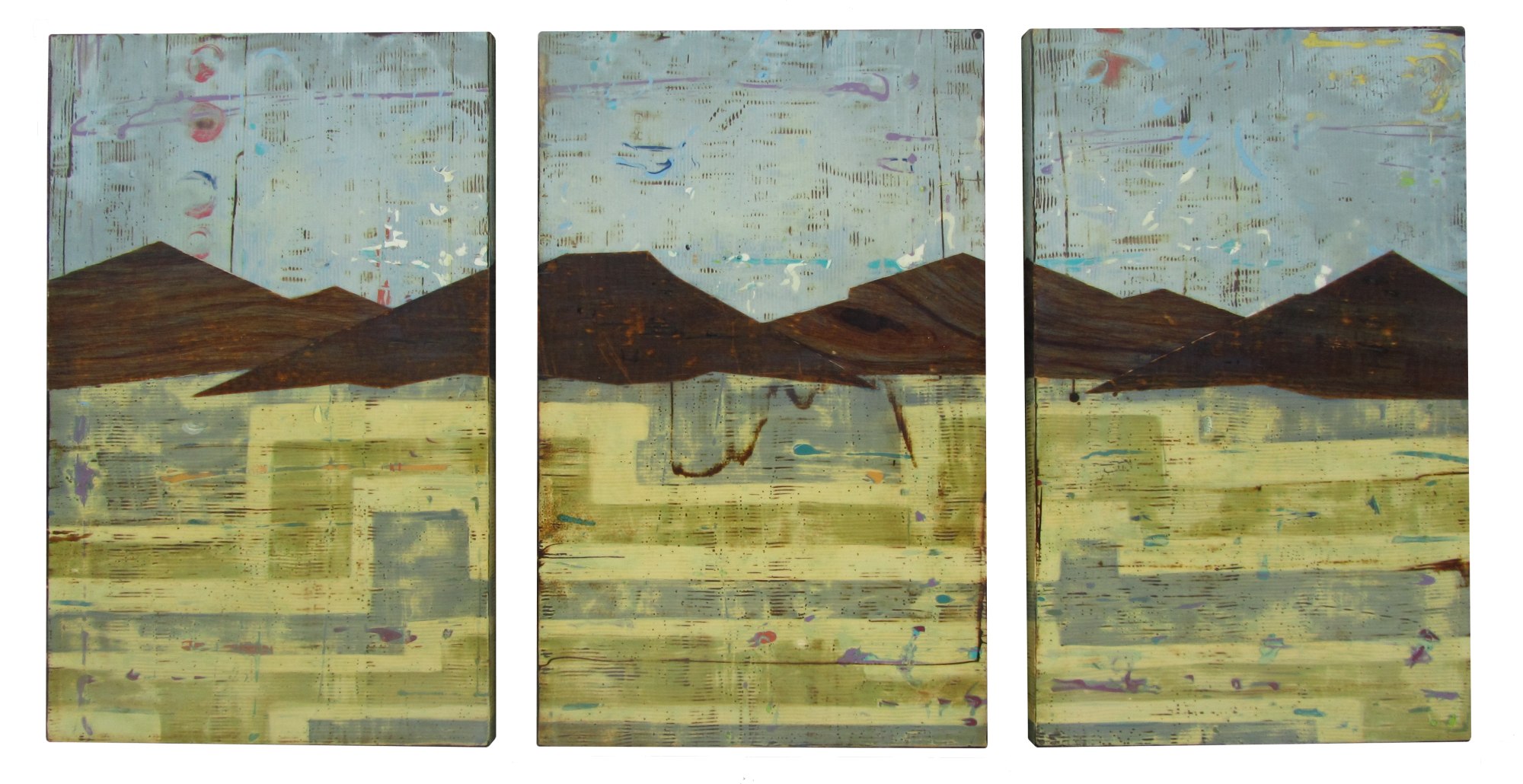 This multiple layered painting wraps around the sides of the 15 in wide panels I recommend hanging the painting the same distance apart as the depth of the painting. This is viewed by me a seen you see when looking out the car window driving through Montana. I love to create interdisciplinary impressionism art. I fell in love with historic paint and plaster techniques, usually used in a cathedral-like setting. I twist them around, add some modern mixes, and place them on a substrate so that you can have a piece of the cathedral to add to your home or business. I love the honor of commissioned work, and the first consultation is free.